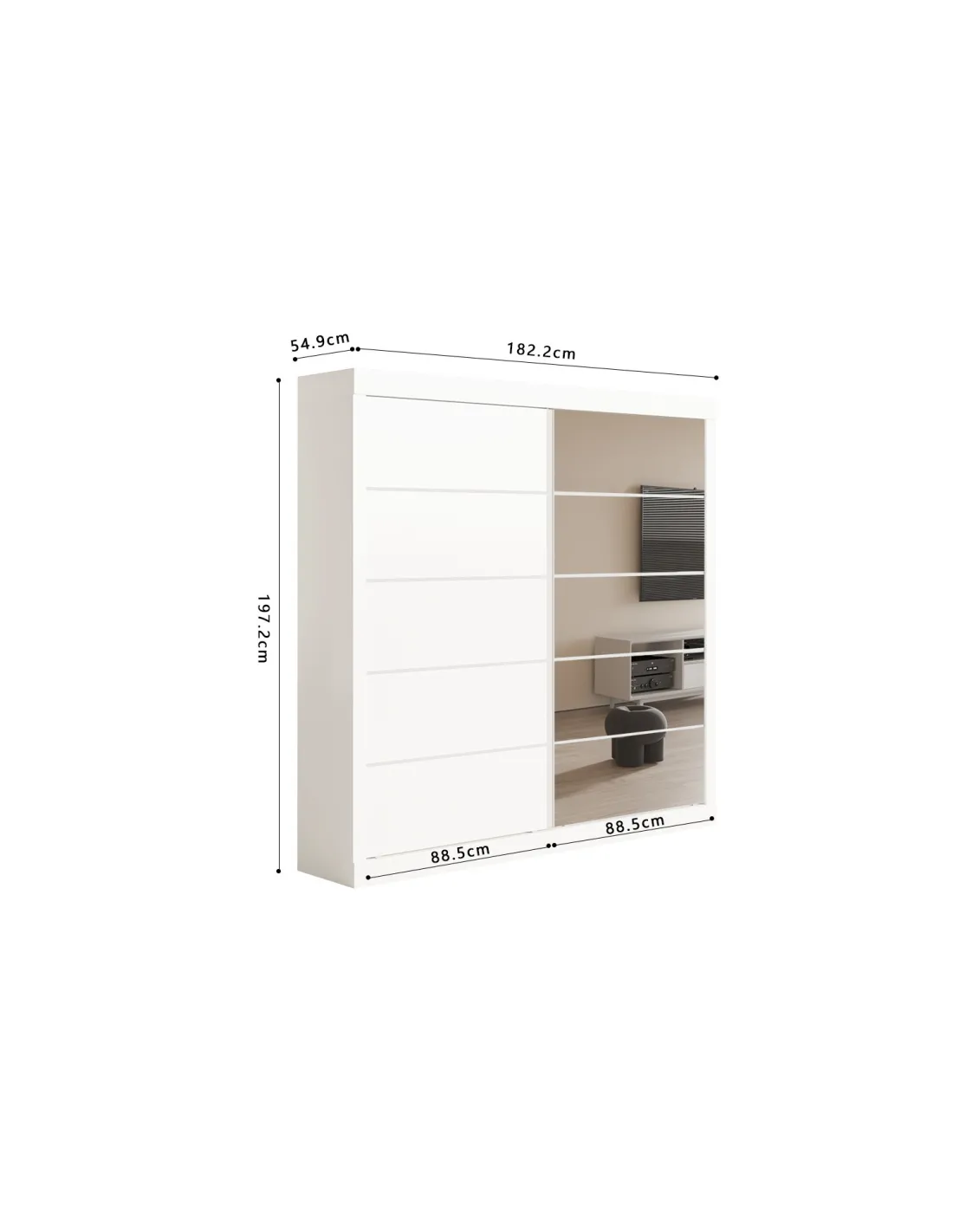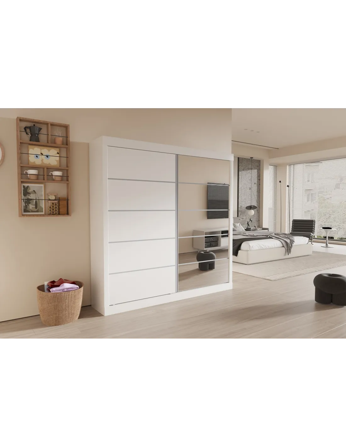 Armoire 'Mike' à 2 portes coulissantes avec 1 porte miroir – Blanc