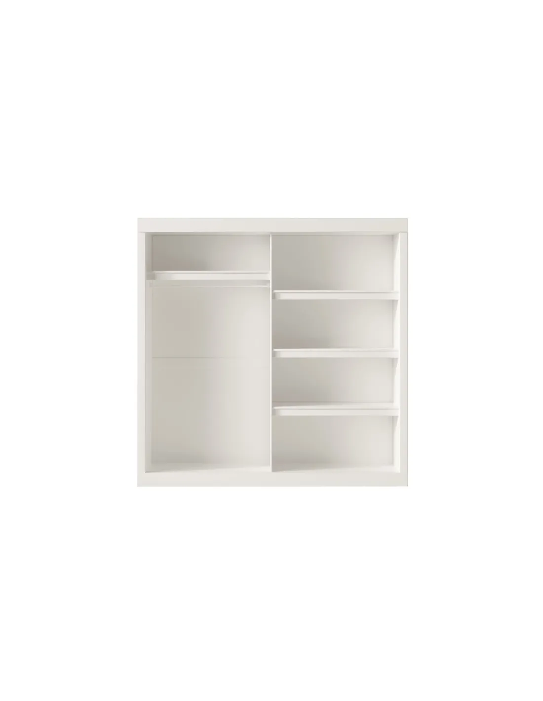 - Gain d’espace : Les portes coulissantes rendent cette armoire idéale pour des pièces aux dimensions limitées, maximisant l’accessibilité sans compromettre l’espace.