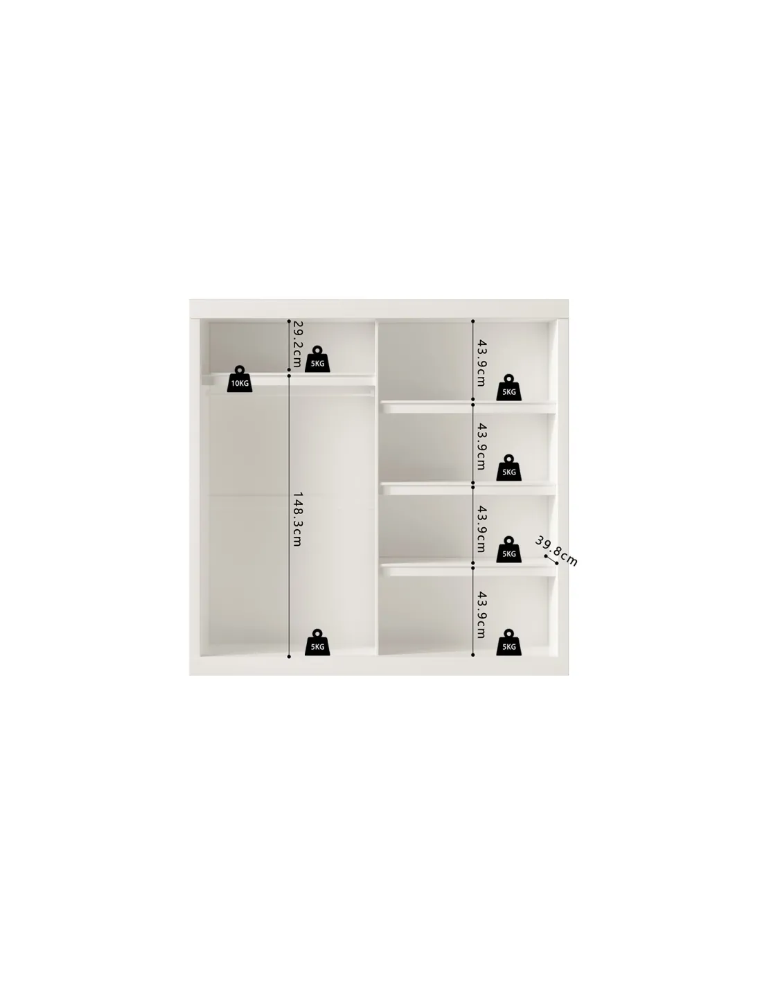 - Portes coulissantes pratiques : Les 2 portes coulissantes permettent un accès facile et sans encombre aux compartiments de rangement. Elles sont idéales pour les espaces réduits, car elles n'empiètent pas sur l’espace devant l’armoire.