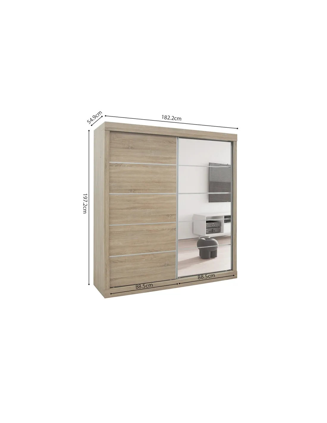 - Dimensions idéales : Avec ses dimensions de 197,5 cm de hauteur, 182,5 cm de largeur et 52,5 cm de profondeur, cette armoire offre un espace de rangement généreux sans prendre trop de place, ce qui en fait une solution parfaite pour les chambres de taille moyenne.