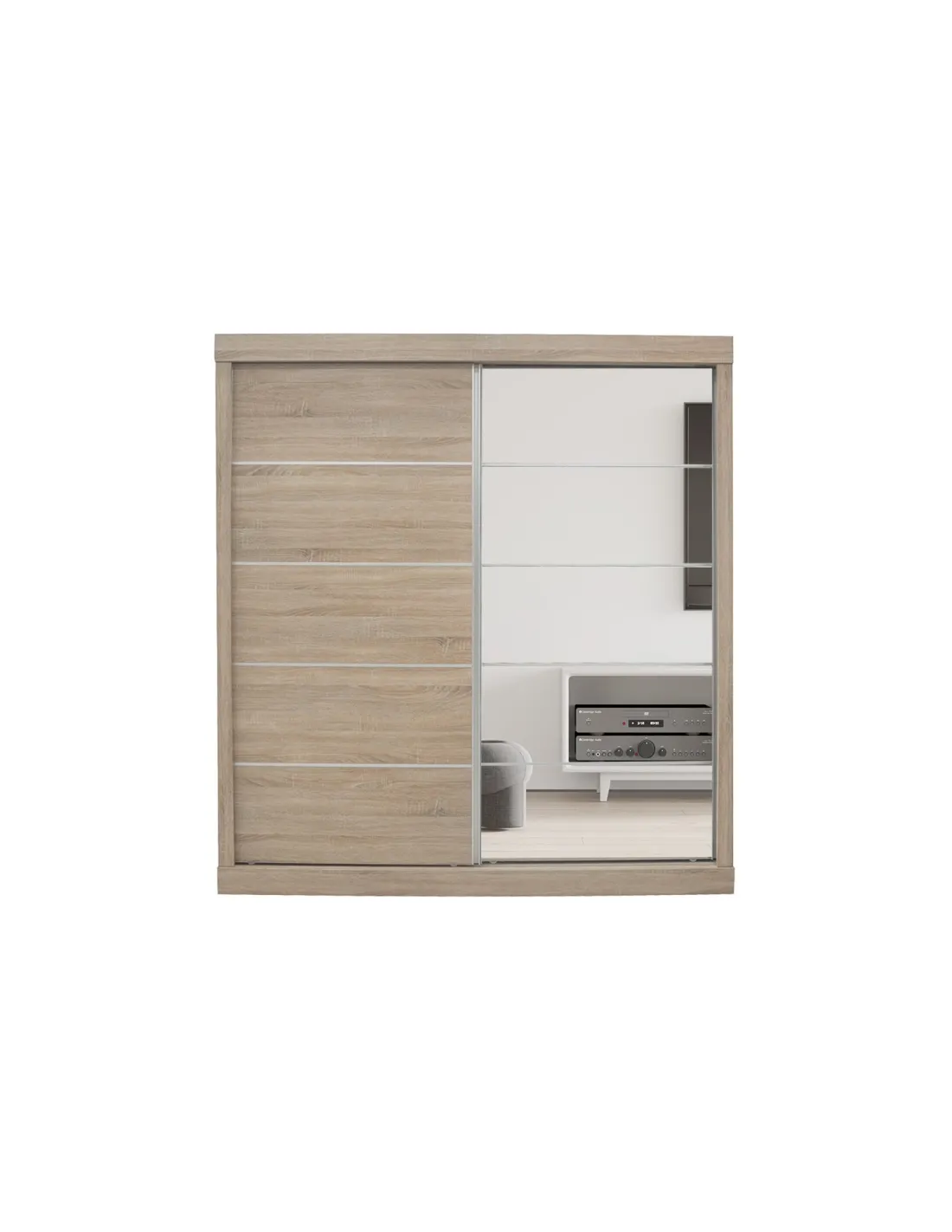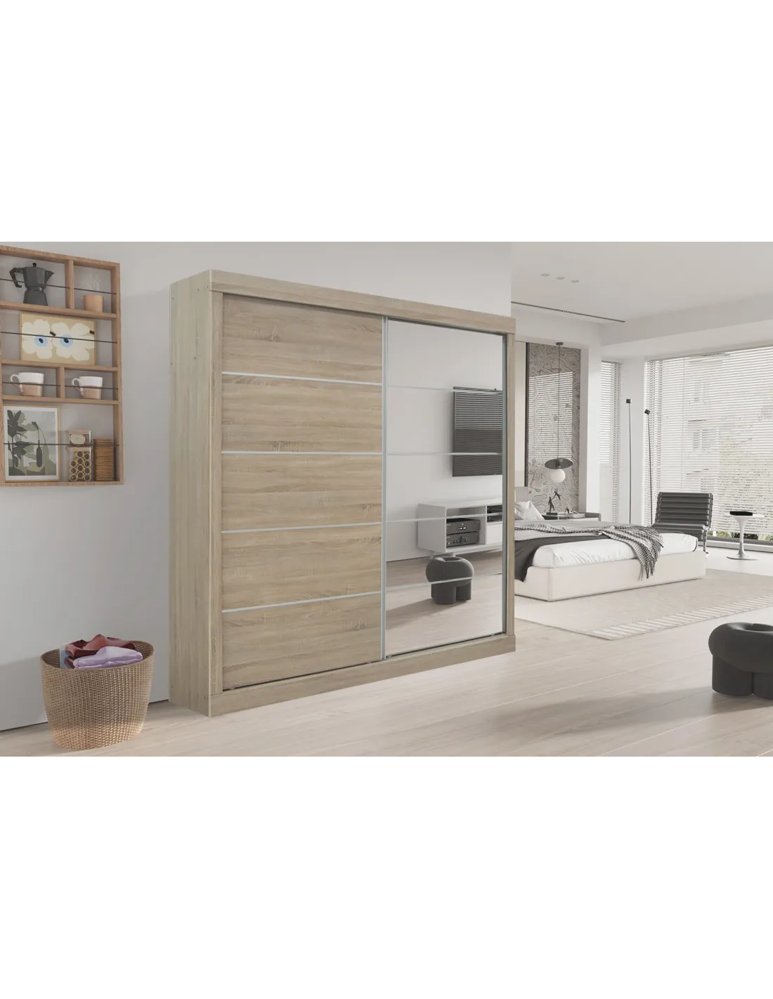Armoire 'Mike' à 2 portes coulissantes avec 1 porte miroir – Finition Sonoma