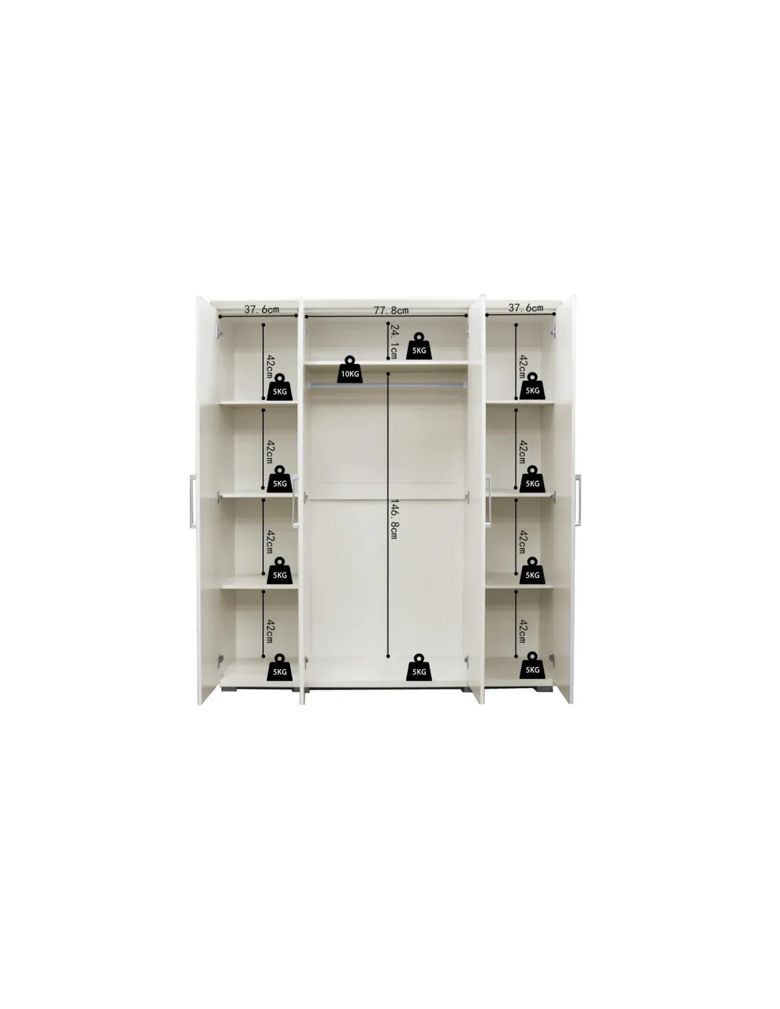 - Rangement fonctionnel : Grâce à ses 4 portes, cette armoire permet d'organiser et d'accéder aisément à vos vêtements, vous aidant à maintenir une chambre ordonnée.
