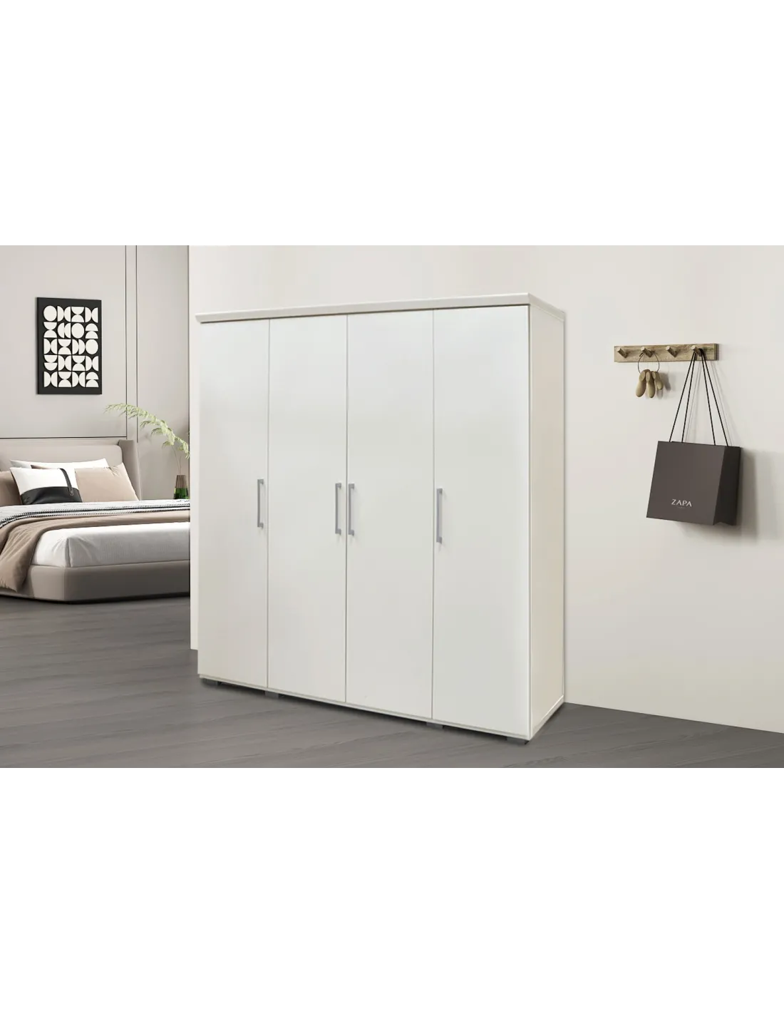 Armoire 'Mike' à 4 portes – Finition blanche
