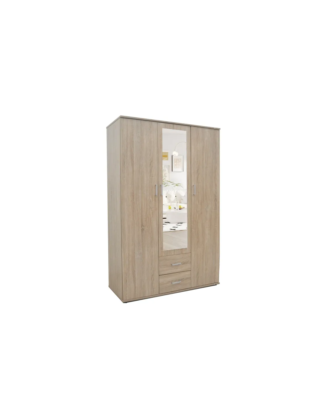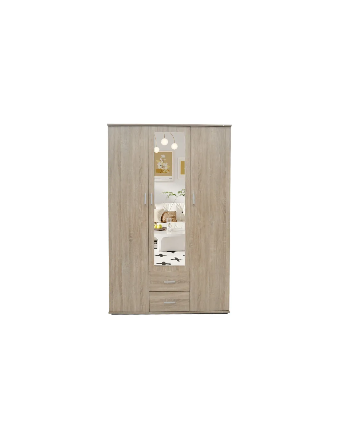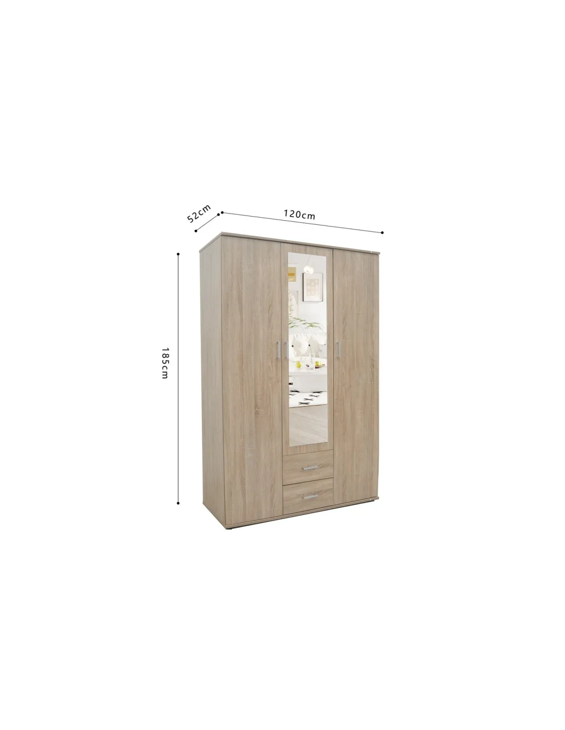 Armoire ‘Marc’ 3 Portes, 2 Tiroirs avec Miroir - Finition Sonoma : Style et Rangement Maximisé