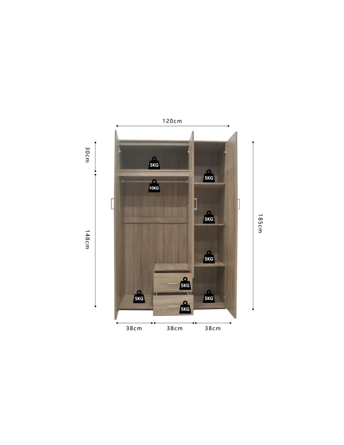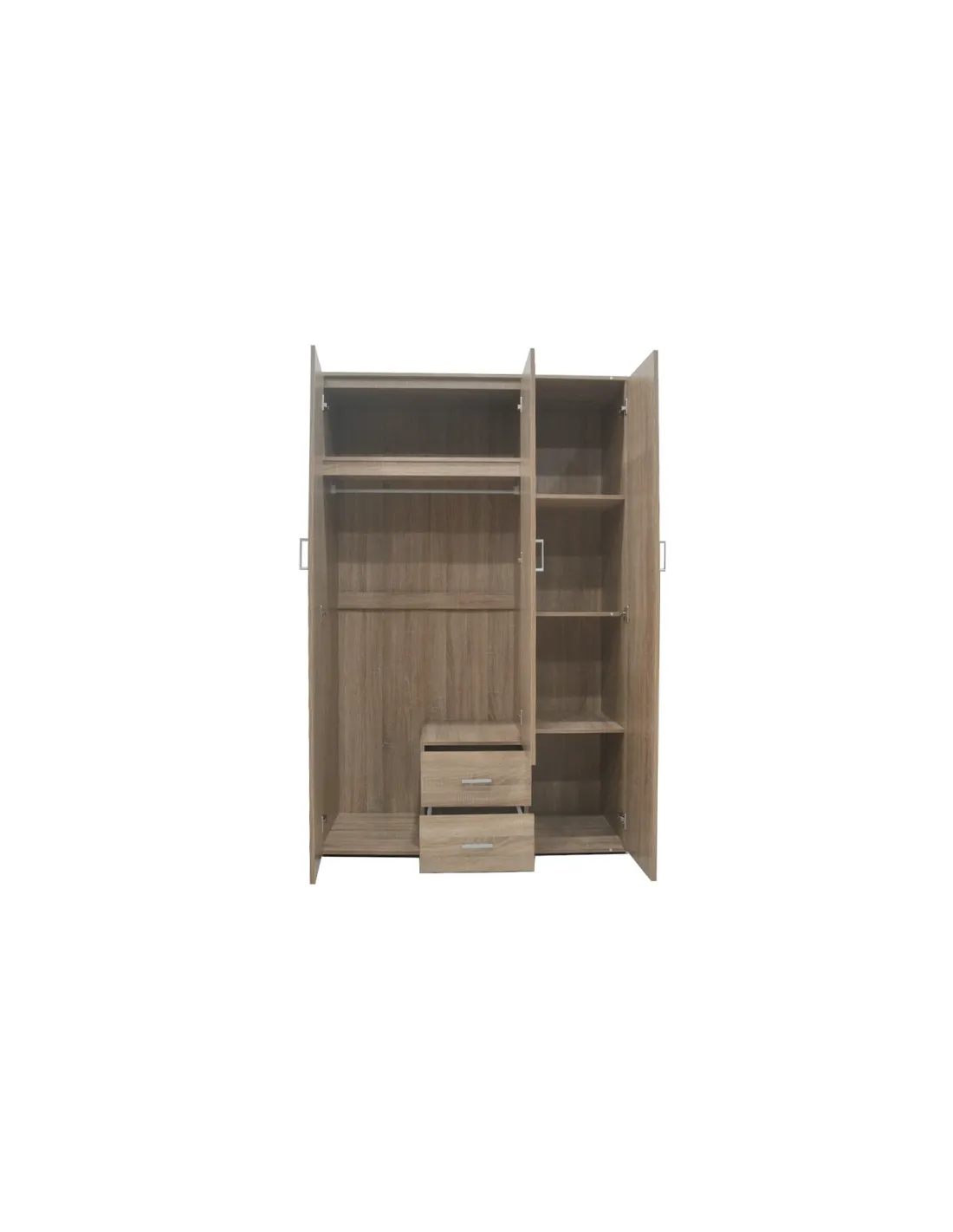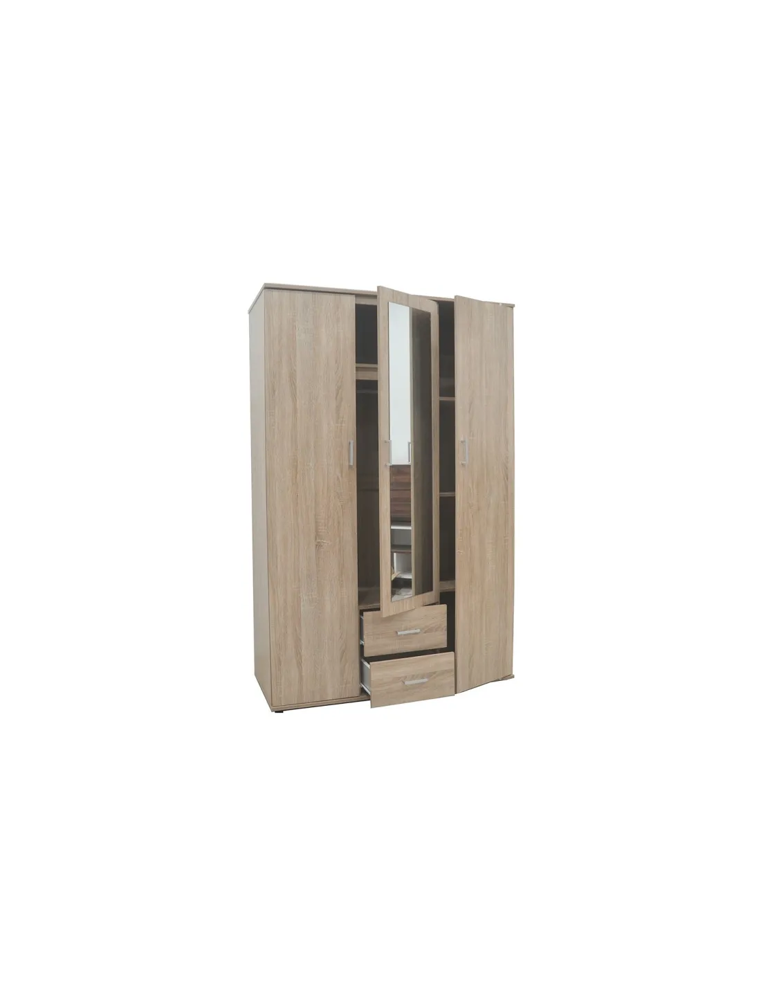 Armoire ‘Marc’ 3 Portes, 2 Tiroirs avec Miroir - Finition Sonoma : Style et Rangement Maximisé