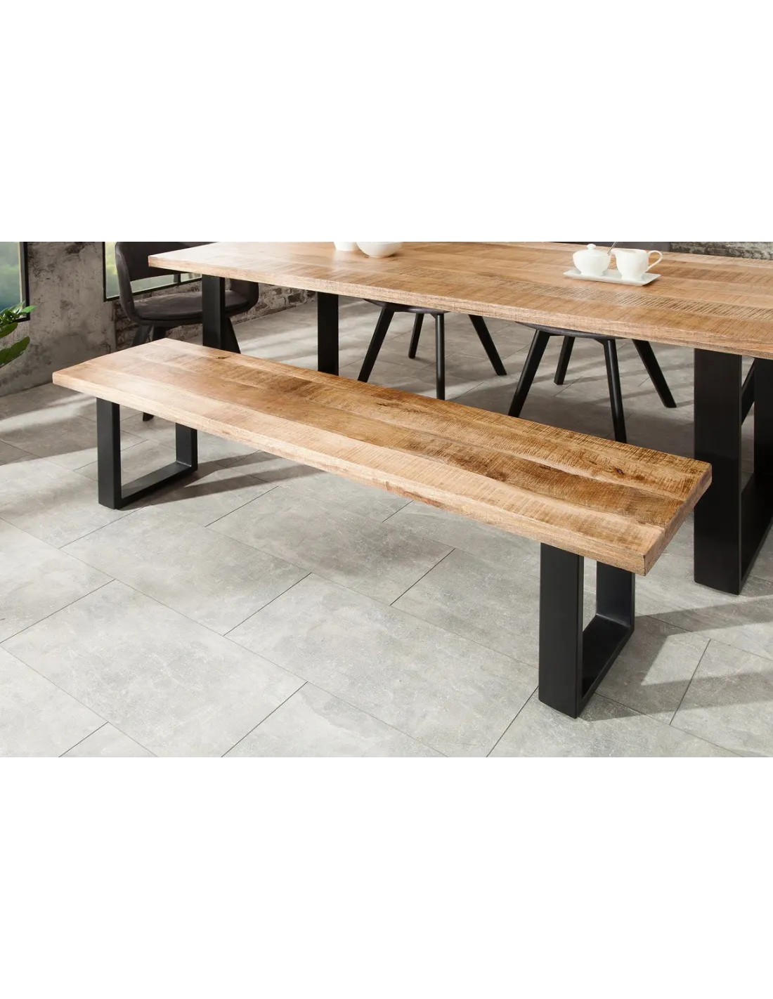 Associez le banc IRON CRAFT à une table en bois et métal pour un look industriel complet.