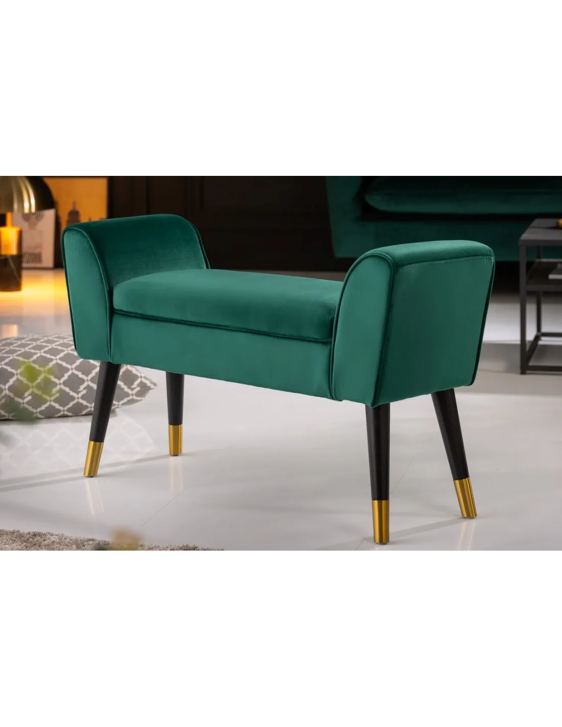 Apportez une touche de raffinement et de modernité à votre intérieur avec le banc SCARLETT 90 cm. Son revêtement en velours vert émeraude et son piètement élégant allient design sophistiqué et confort optimal, en faisant une pièce idéale pour une entrée, un salon ou une chambre.
