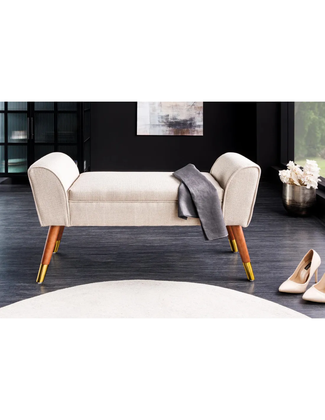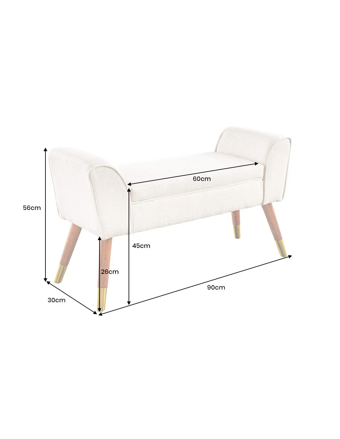 Banc SCARLETT 90 cm – Élégance rétro en tissu texturé beige