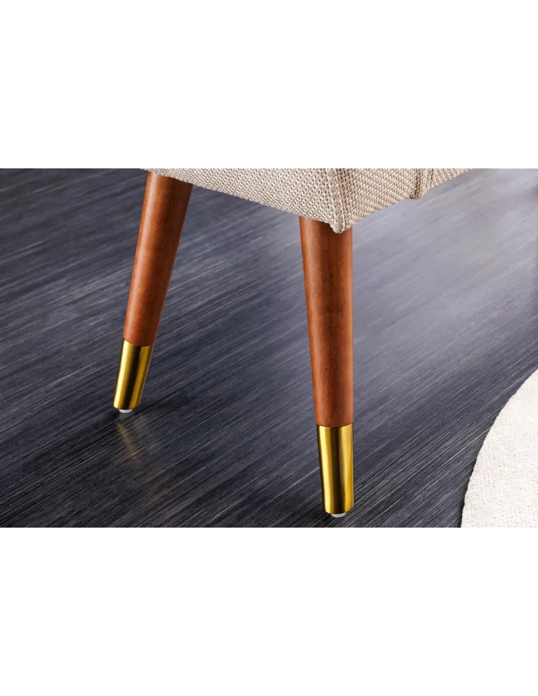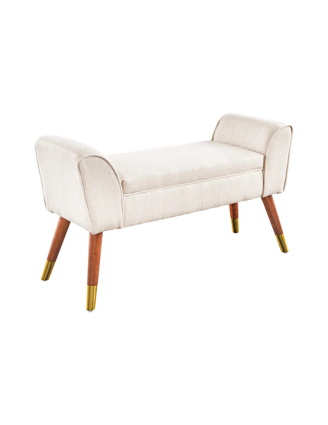Ajoutez une touche de charme vintage et de raffinement à votre intérieur avec le banc SCARLETT 90 cm en tissu texturé beige. Inspiré du style rétro, ce banc séduit par son revêtement structuré, ses pieds en bois massif avec embouts dorés et son allure élégante et intemporelle.