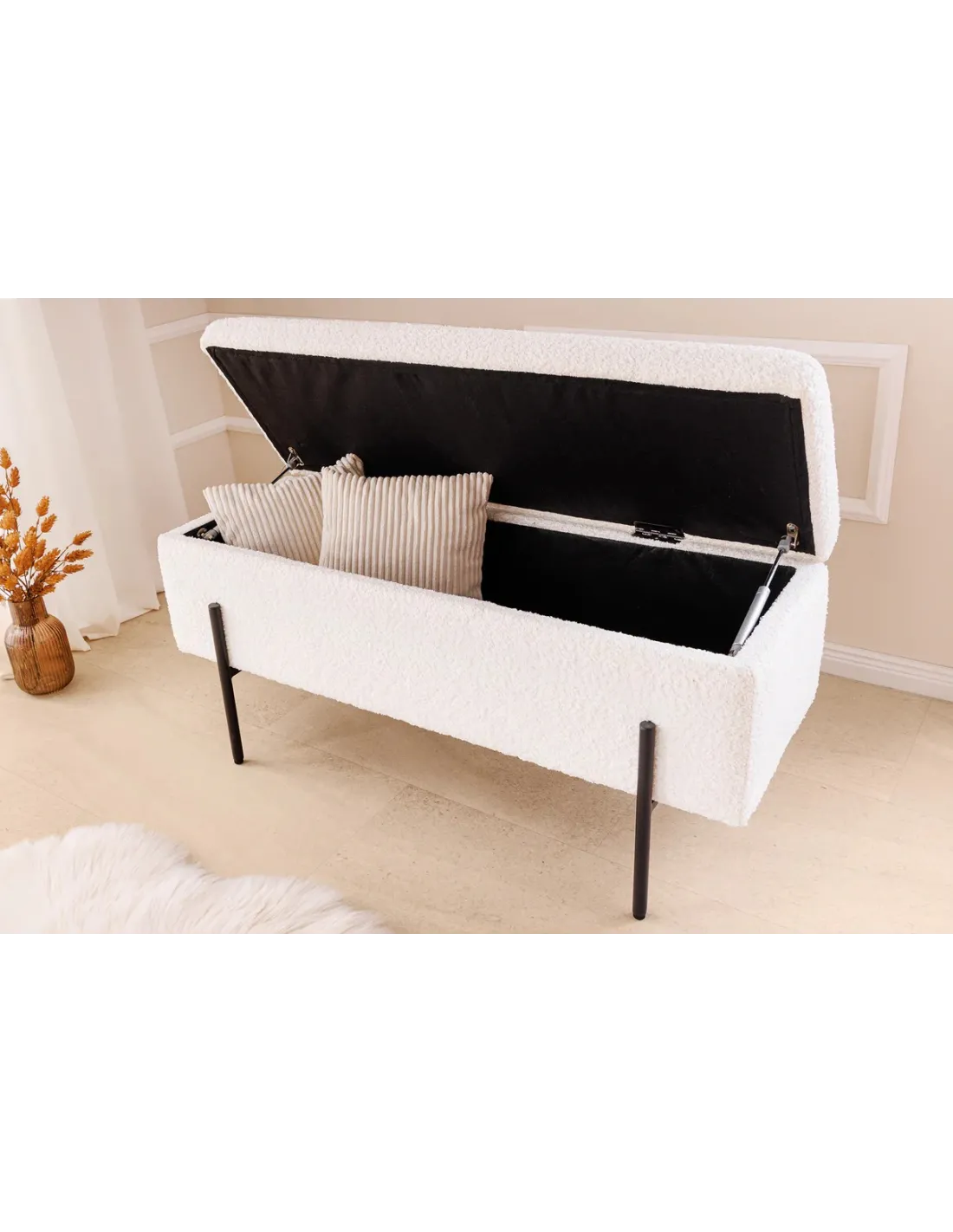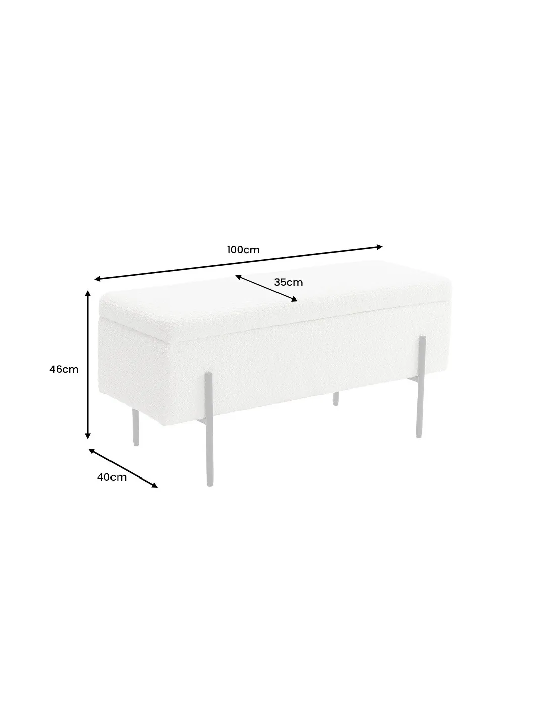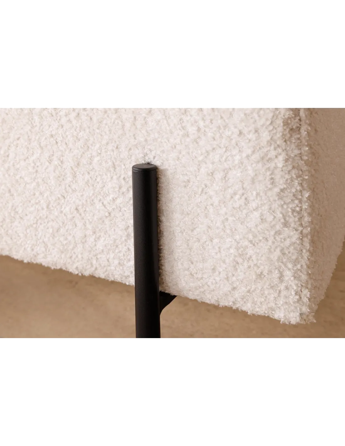 Banc SCARLETT 100 cm en bouclé blanc et métal noir – Élégance et praticité pour votre intérieur
