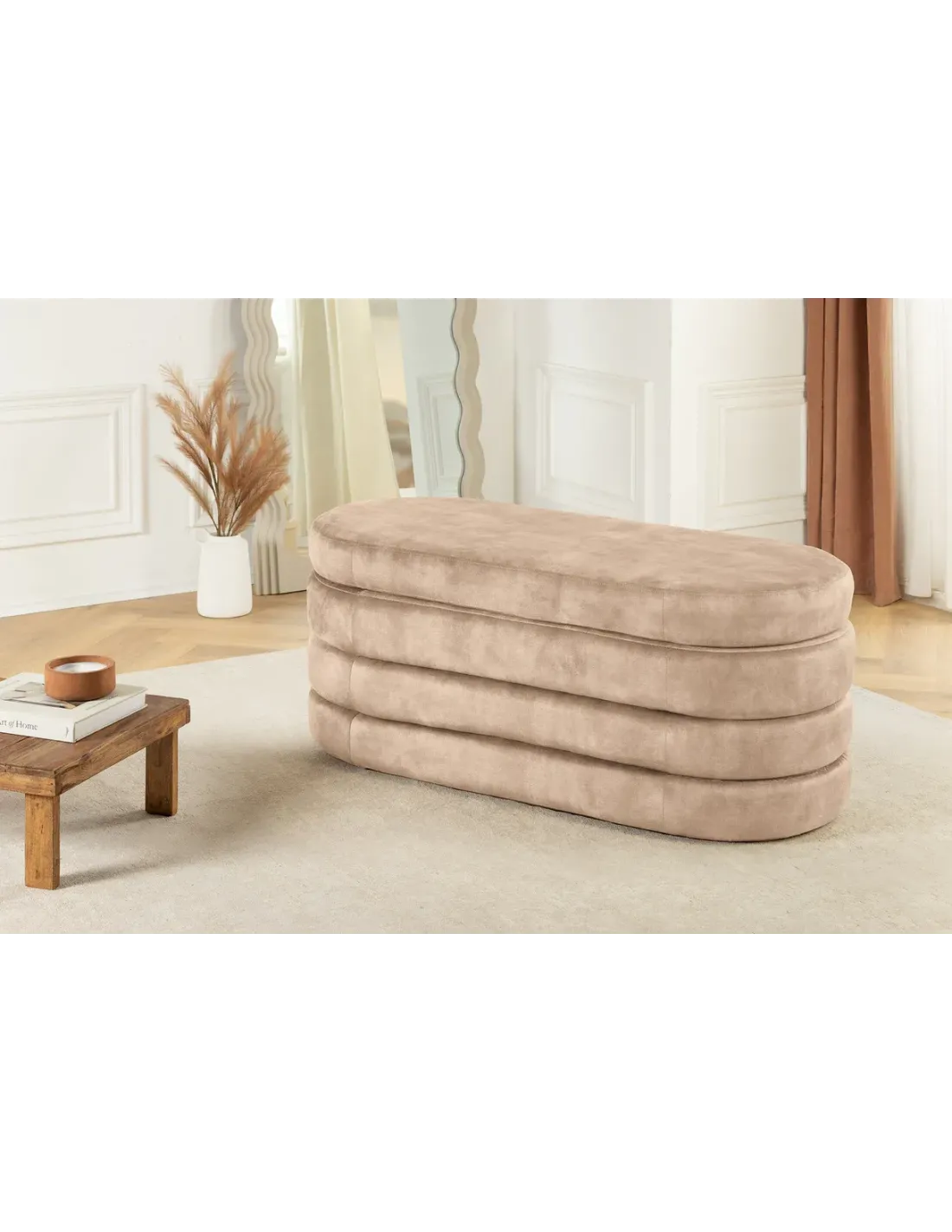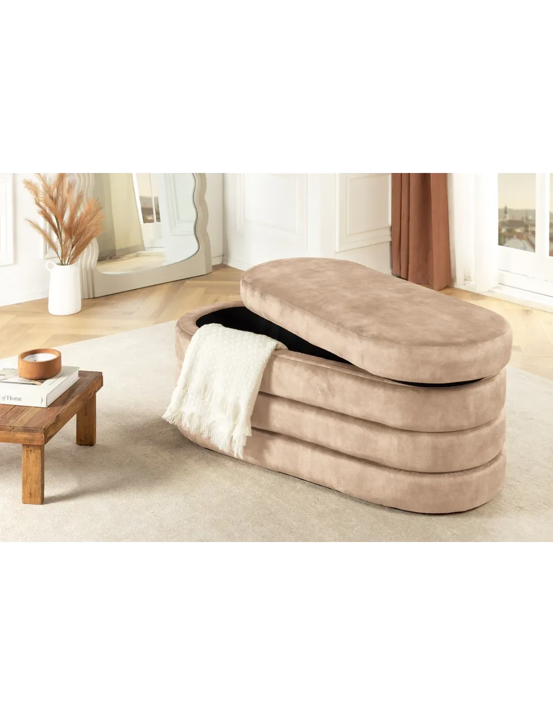 Tabouret VOQUE 50 cm en velours gris – Élégance et rangement pratique