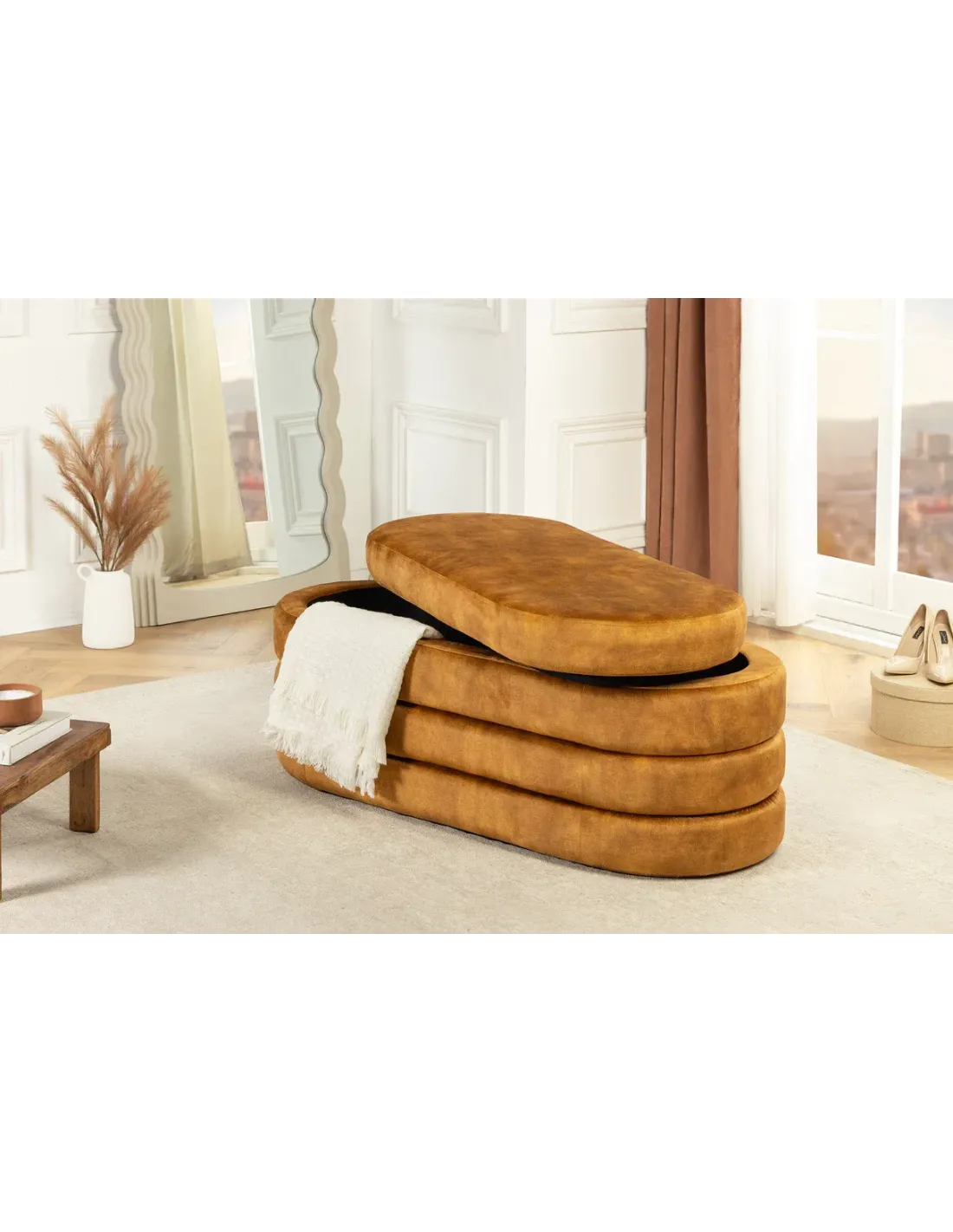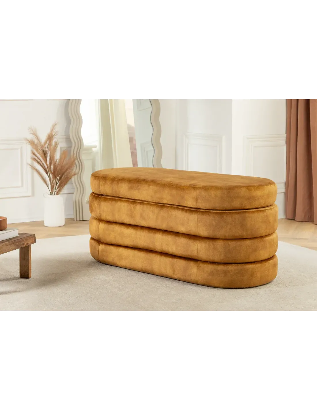Tabouret VOQUE 50 cm en velours jaune moutarde – Confort et rangement élégant