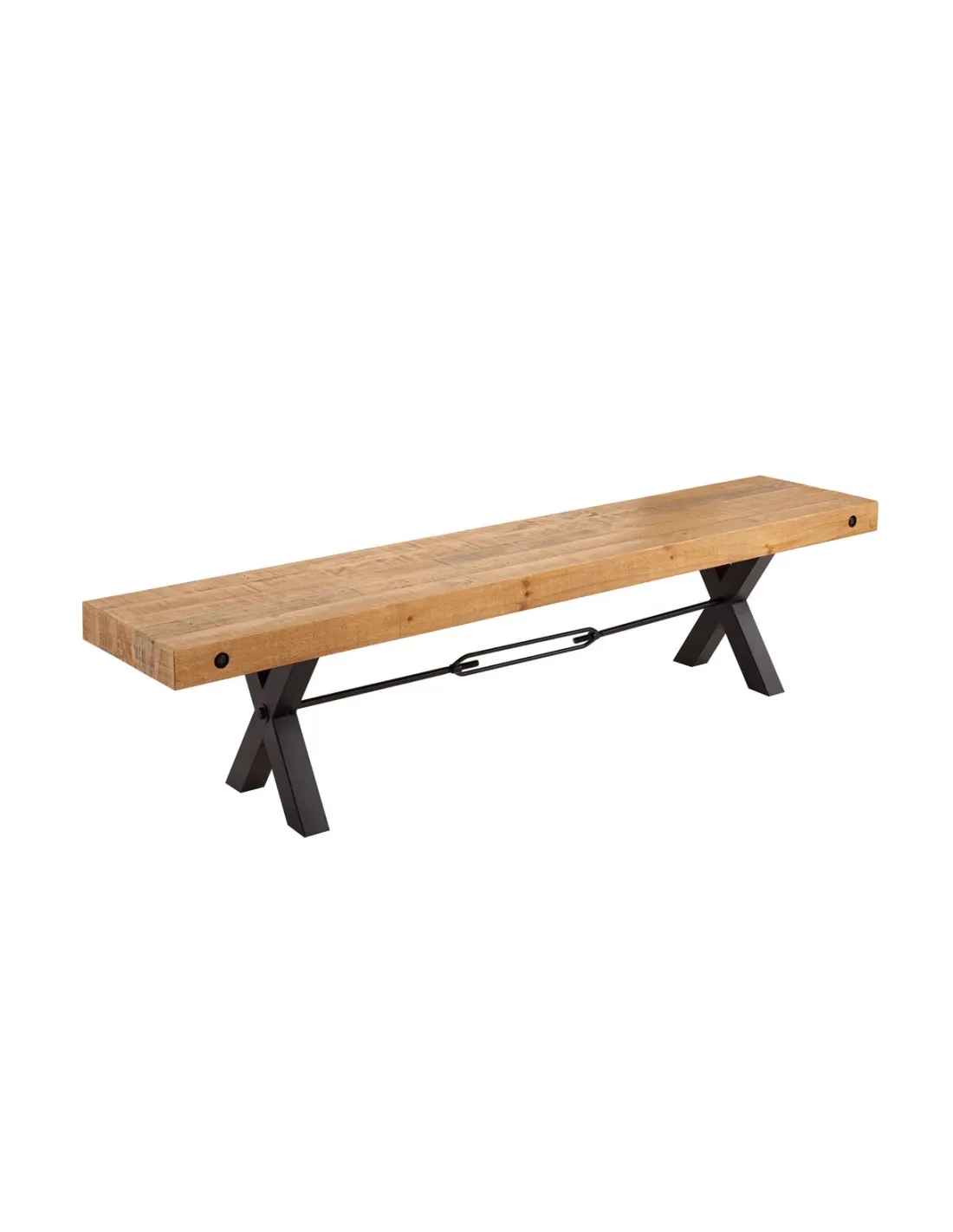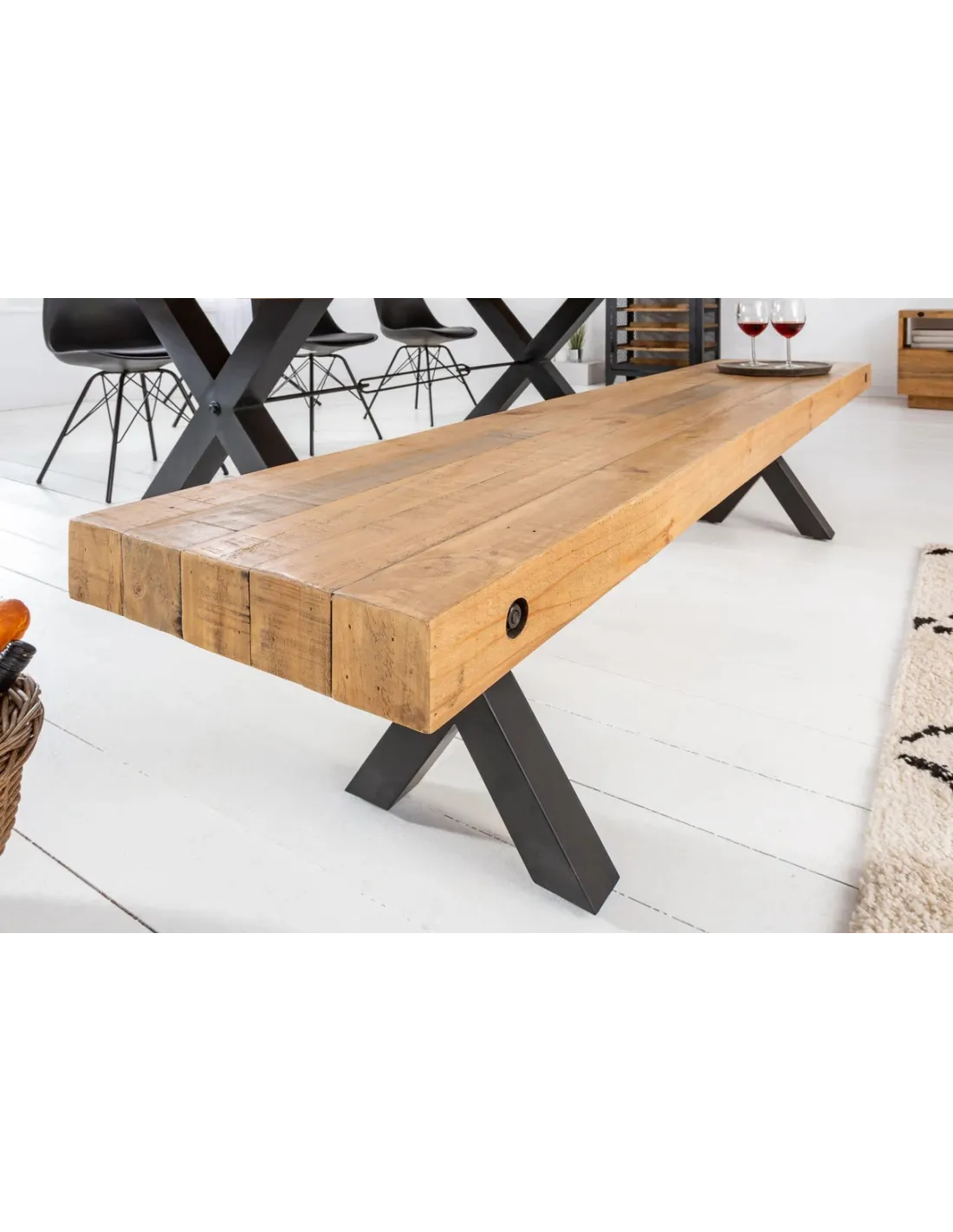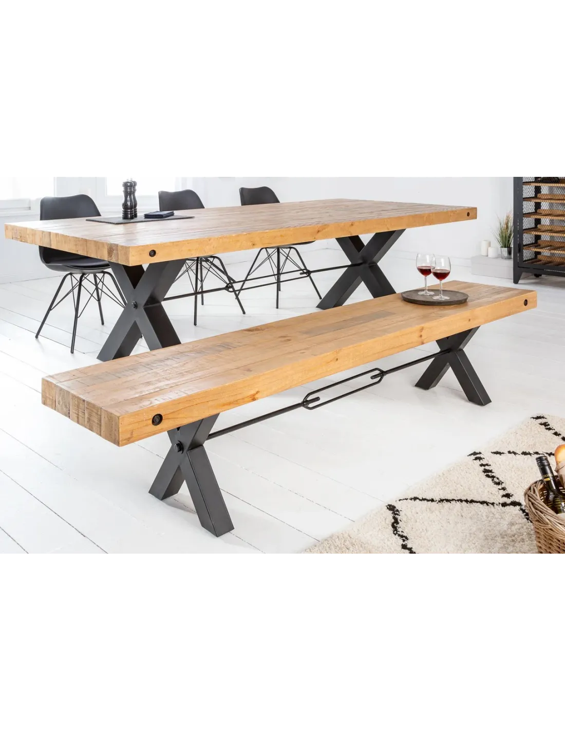 Le banc THOR 200 cm est la rencontre parfaite entre le charme rustique du bois naturel et l’élégance brute du métal. Avec son plateau en pin verni et ses pieds en X en fer, il incarne un style industriel authentique et s’impose comme une pièce centrale de votre décoration. Idéal pour accompagner la table à manger THOR, il apporte à votre espace un esprit chaleureux et contemporain.