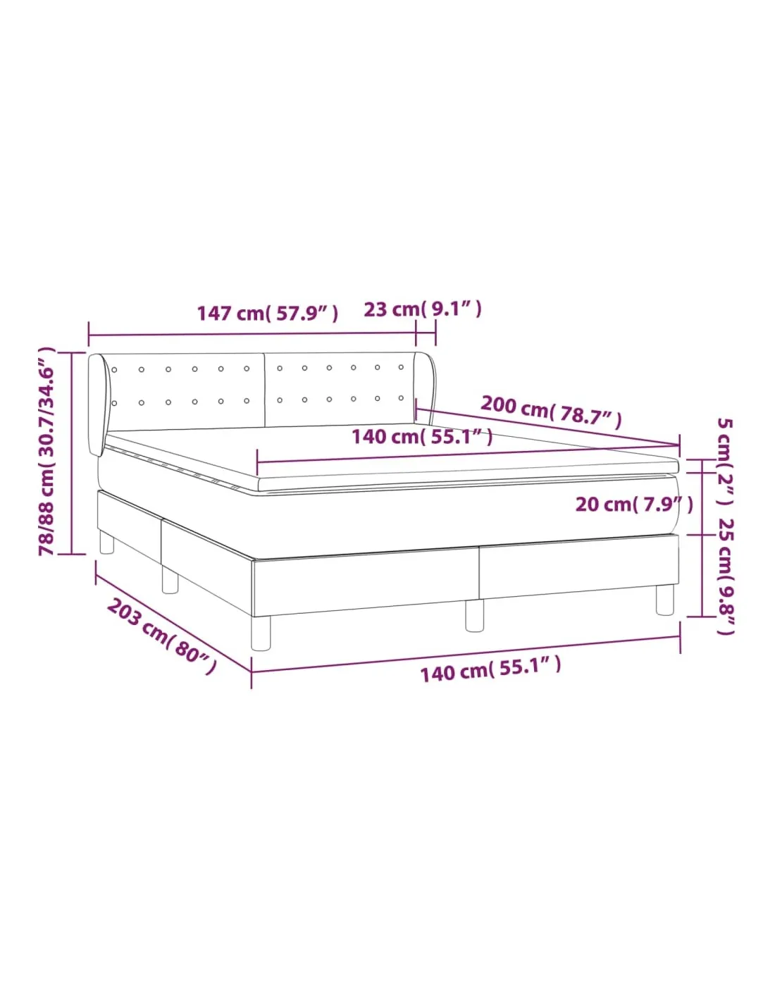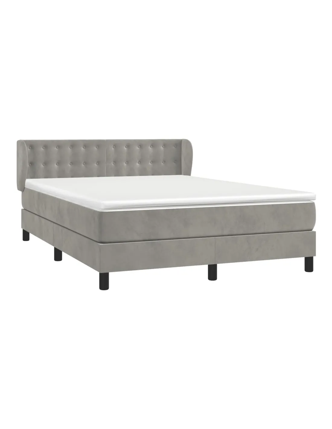 cadre de lit et matelas Gris clair 140x200cm Velours