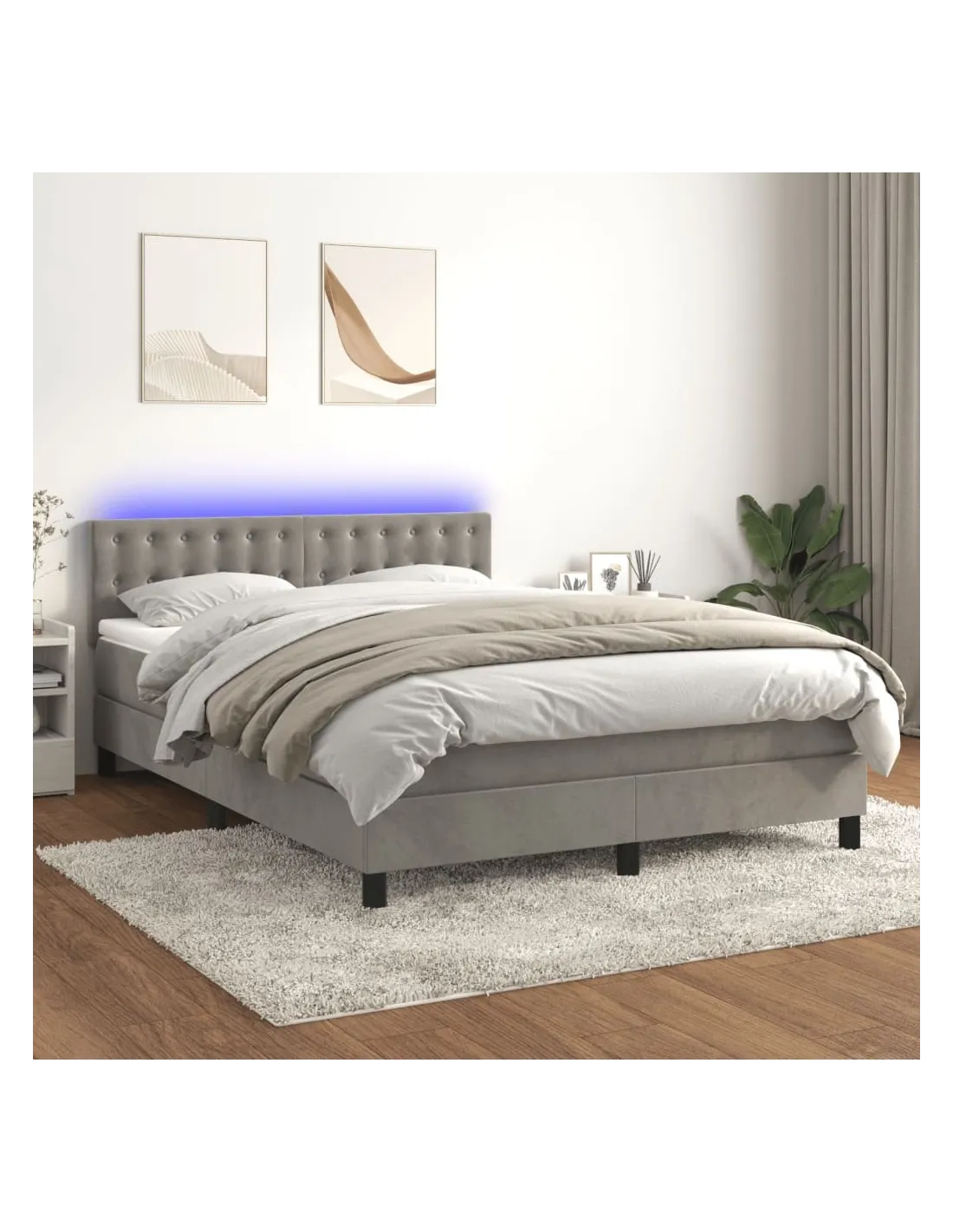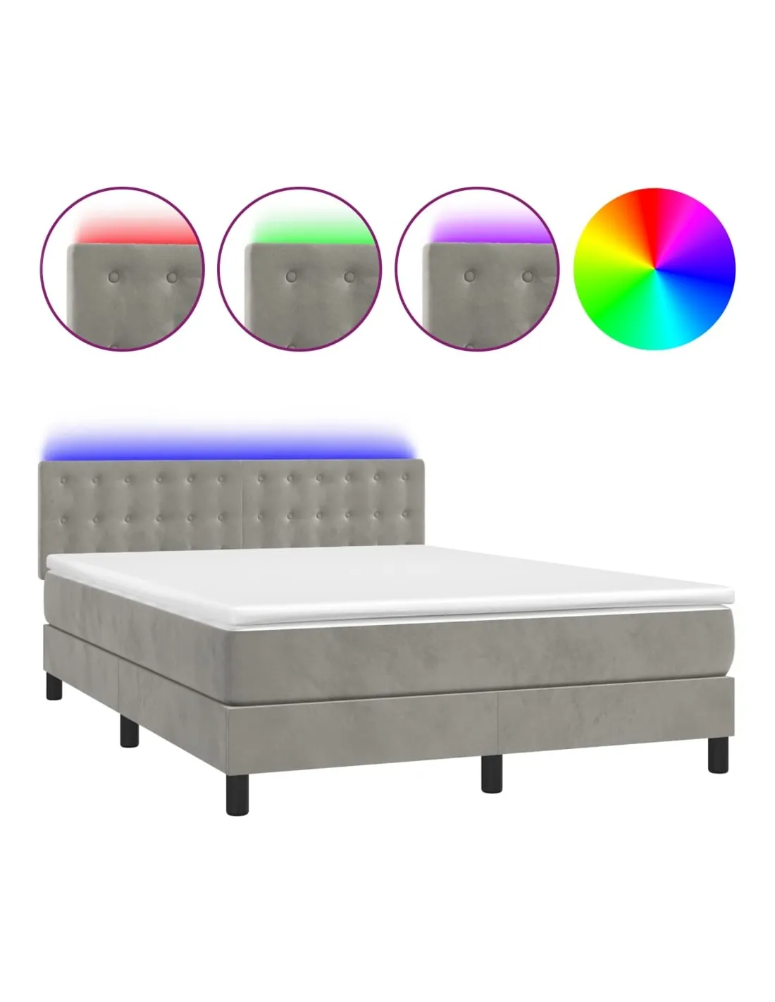 Lit Boxspring LED Gris clair 140x200 cm