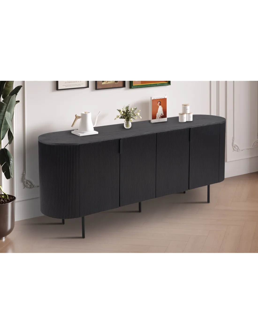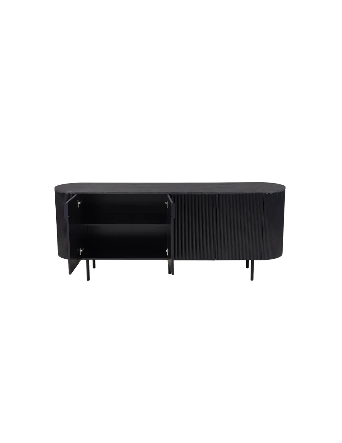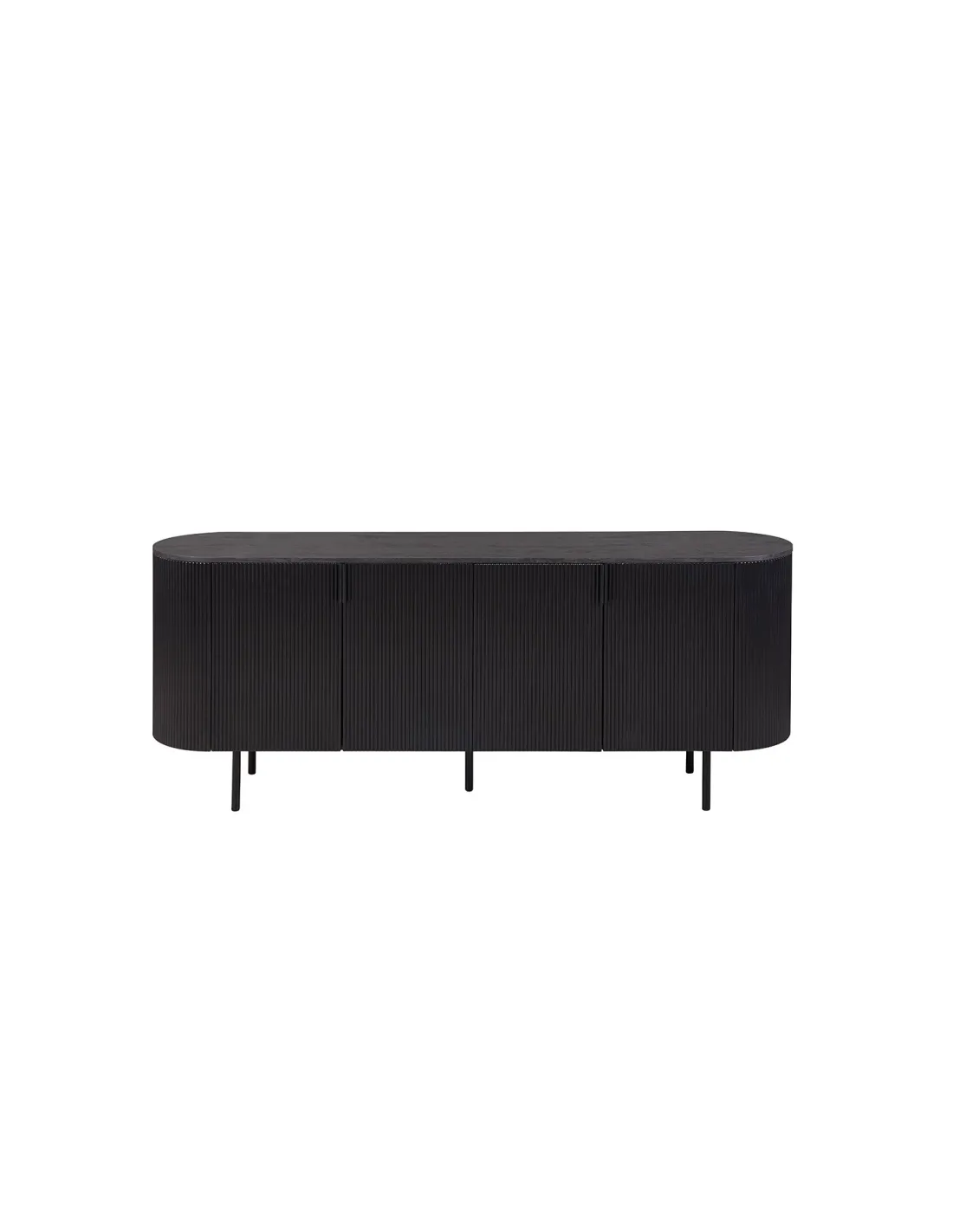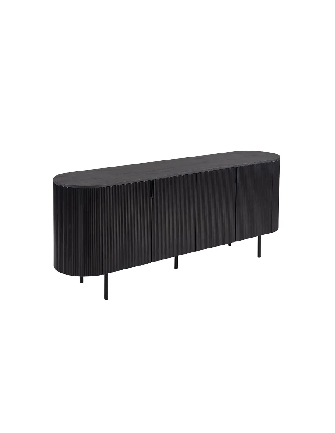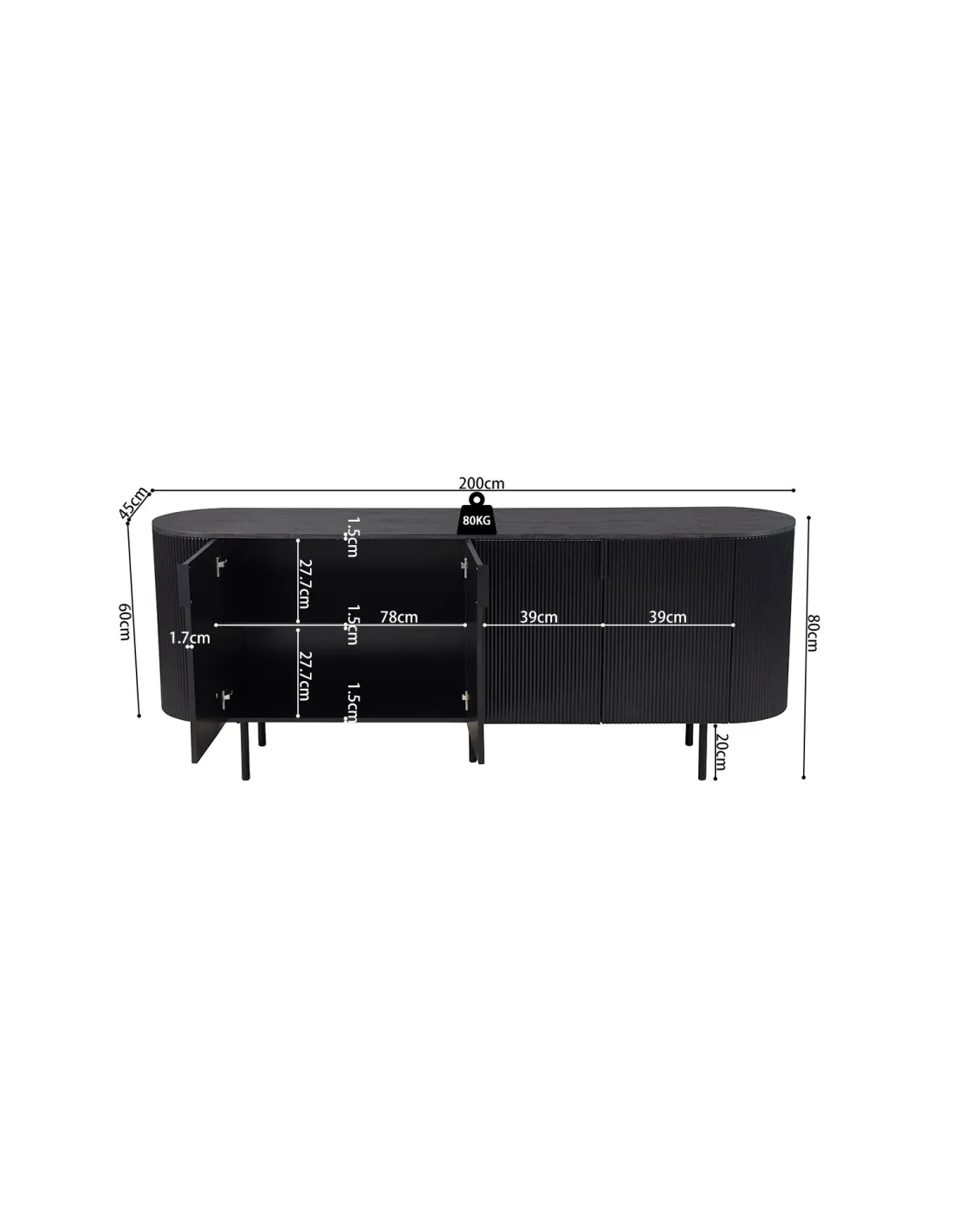 - Dimensions totales : H 80 cm x L 200 cm x P 45 cm. Avec une longueur de 200 cm, ce bahut offre une capacité de rangement spacieuse tout en conservant des dimensions compactes qui lui permettent de ne pas encombrer votre pièce.