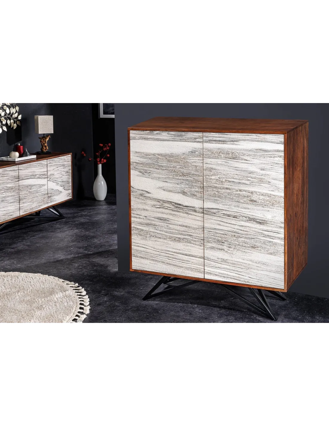 Avec l'armoire Mountain Soul, vous apportez dans votre maison un meuble unique avec de véritables façades en pierre naturelle. Le meuble se distingue par sa composition matérielle exceptionnelle et son traitement innovant de matières premières naturelles.