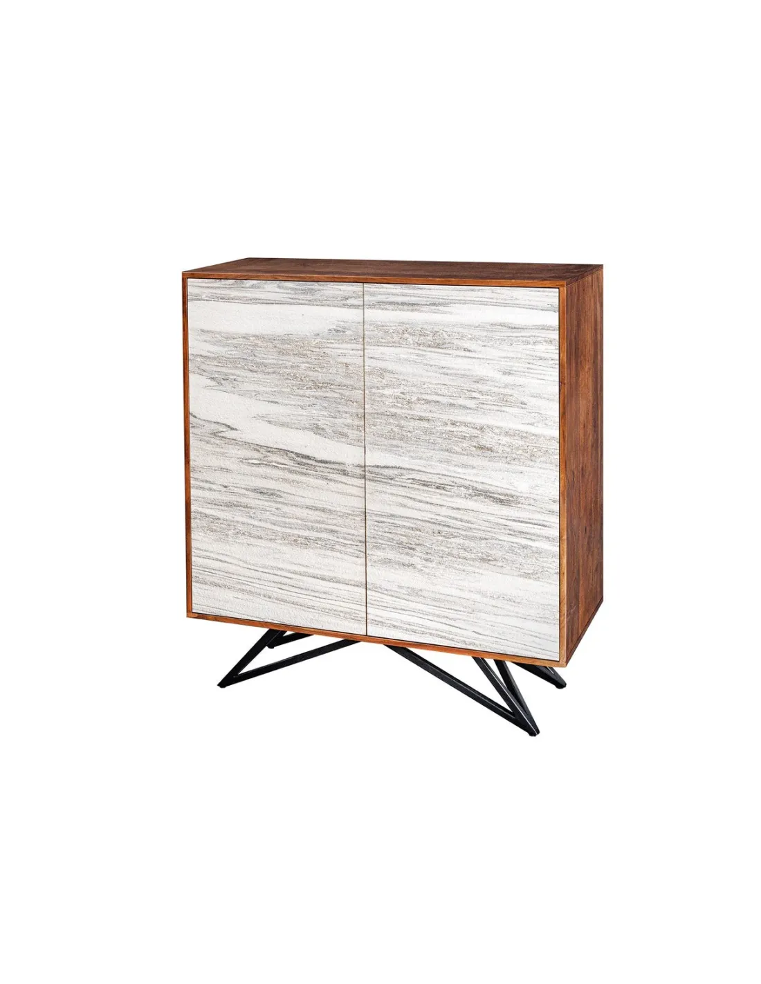 Buffet haut Mountain Soul 120cm en bois d'acacia placage pierre naturelle blanc