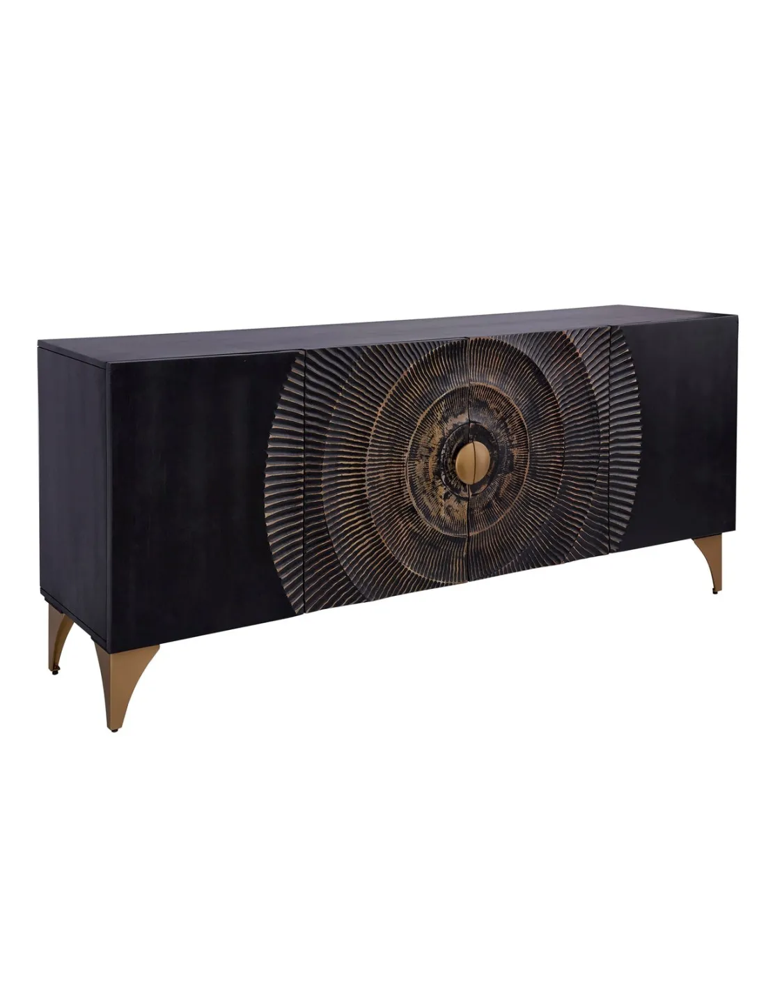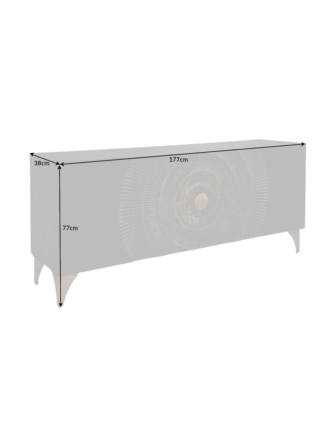 Avec ses dimensions (177 cm de largeur, 38 cm de profondeur et 77 cm de hauteur), le buffet GOLDEN SUNSET offre un grand espace de rangement, tout en restant compact pour s’adapter à différents espaces.