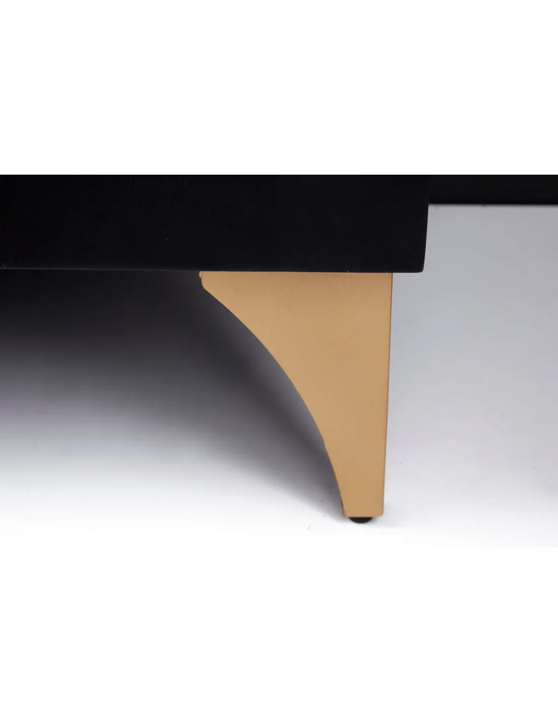 Le métal doré ajoute une dimension chic et élégante, qui contraste magnifiquement avec le noir profond du bois. Ce design sophistiqué s’intègre parfaitement dans des intérieurs modernes, art déco ou contemporains.