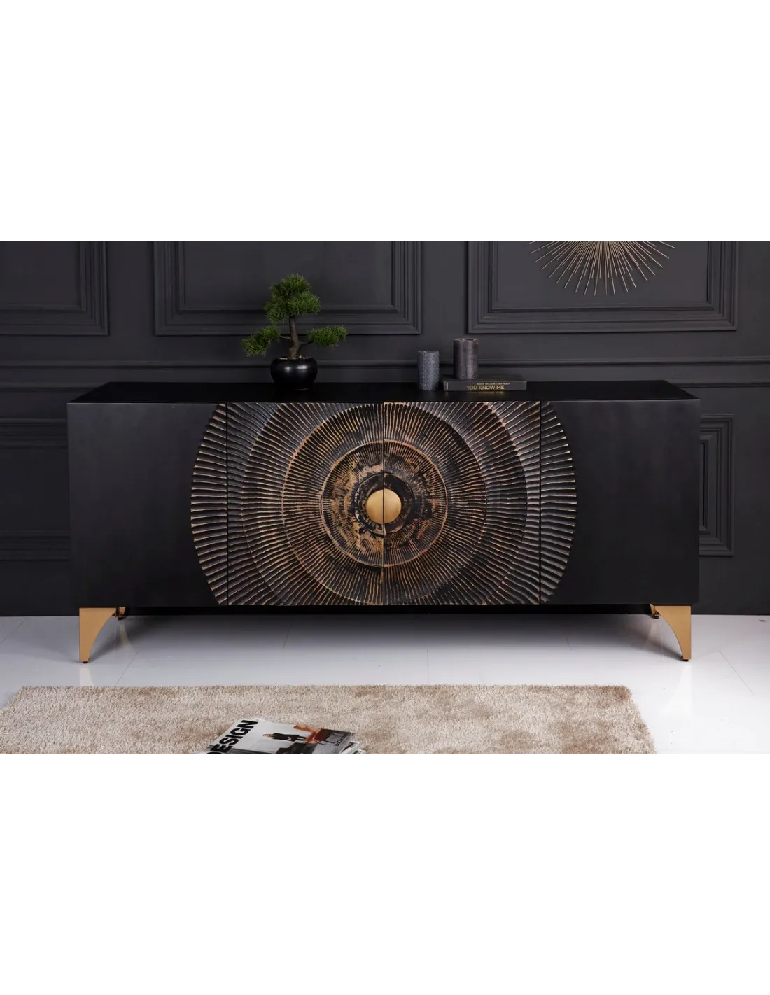 Avec son design sculpté et son mariage de matériaux nobles, le buffet GOLDEN SUNSET 180 cm est un choix parfait pour ceux qui recherchent un meuble élégant, pratique et durable, capable de sublimer un intérieur avec caractère et raffinement.