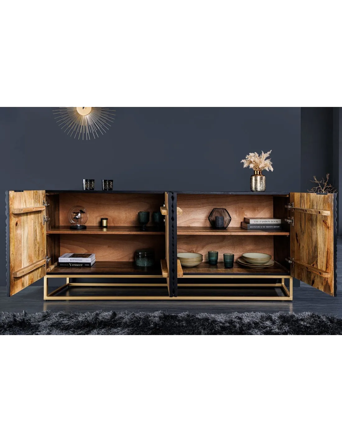 Avec sa façade en bois de manguier massif verni et son effet 3D sculpté à la main, le buffet ILLUSION attire immédiatement le regard et confère profondeur et caractère à votre intérieur.