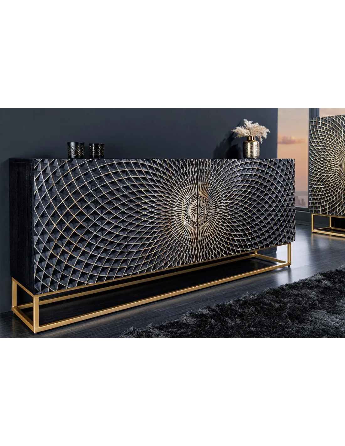 Son design audacieux mêle matières nobles, reliefs sculptés et contrastes raffinés, pour créer un meuble à la fois moderne, élégant et intemporel.