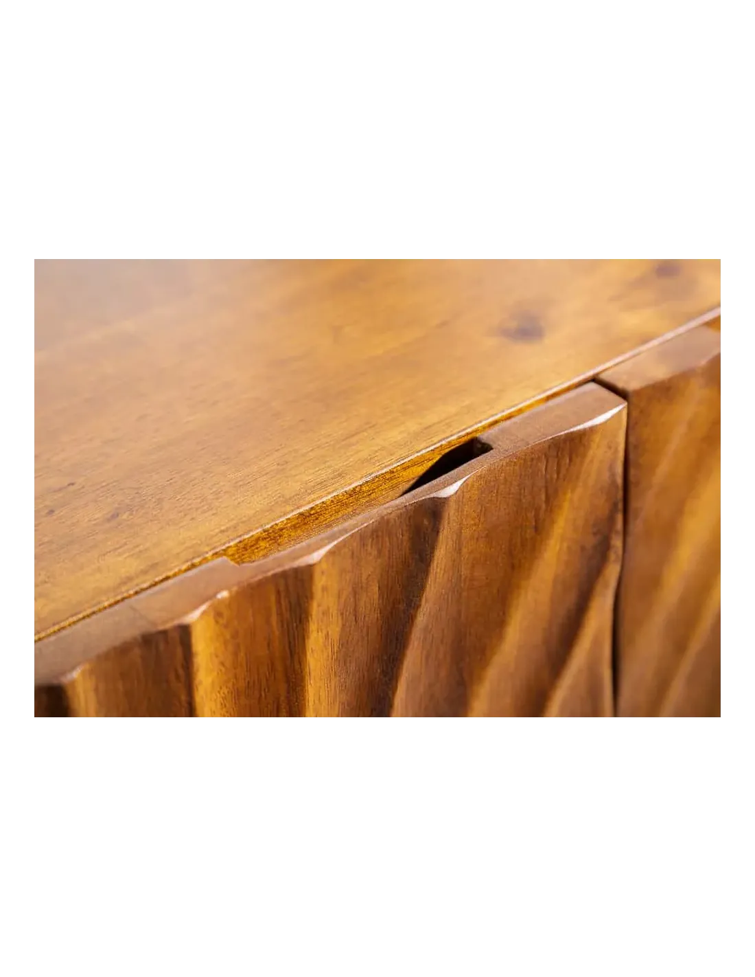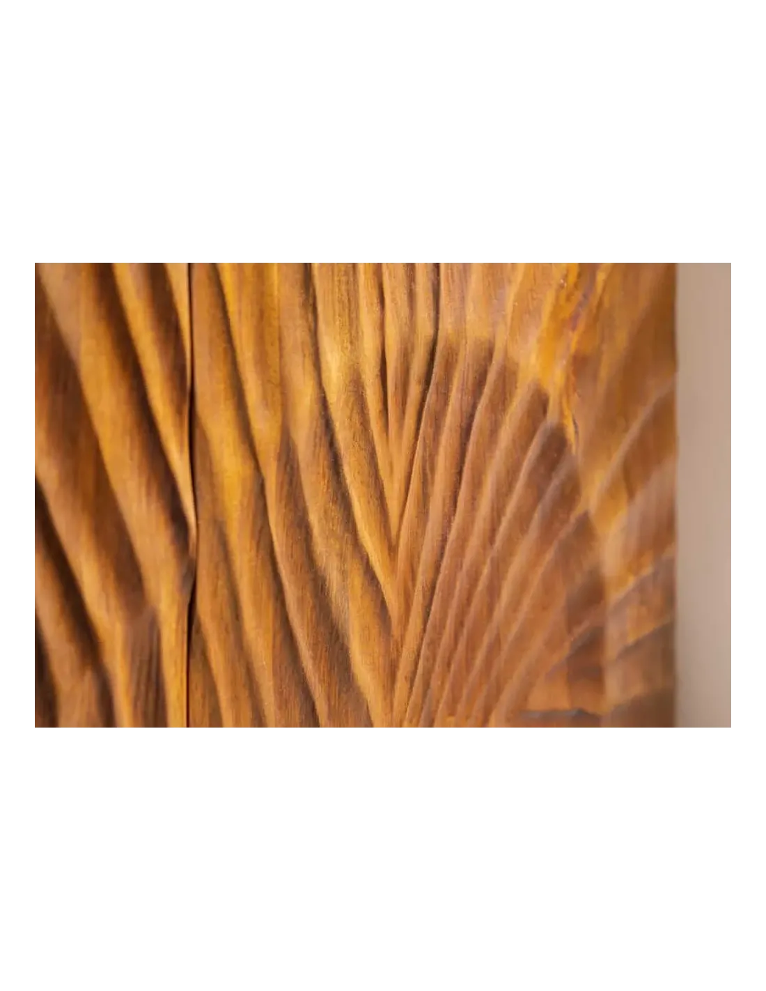 - Motif sculpté : La façade du buffet est ornée d'une sculpture en relief représentant un scorpion enroulé dans un décor tropical, sublimé par une finition marron.