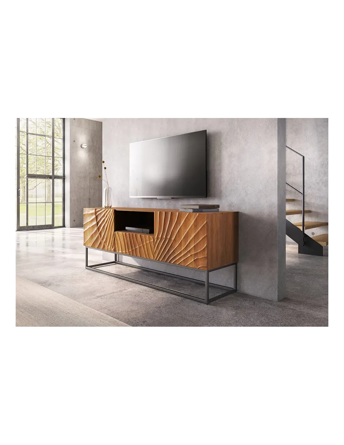 Buffet SCORPION 180 cm en Bois de Manguier marron avec Finition 3D et Piètement Noir