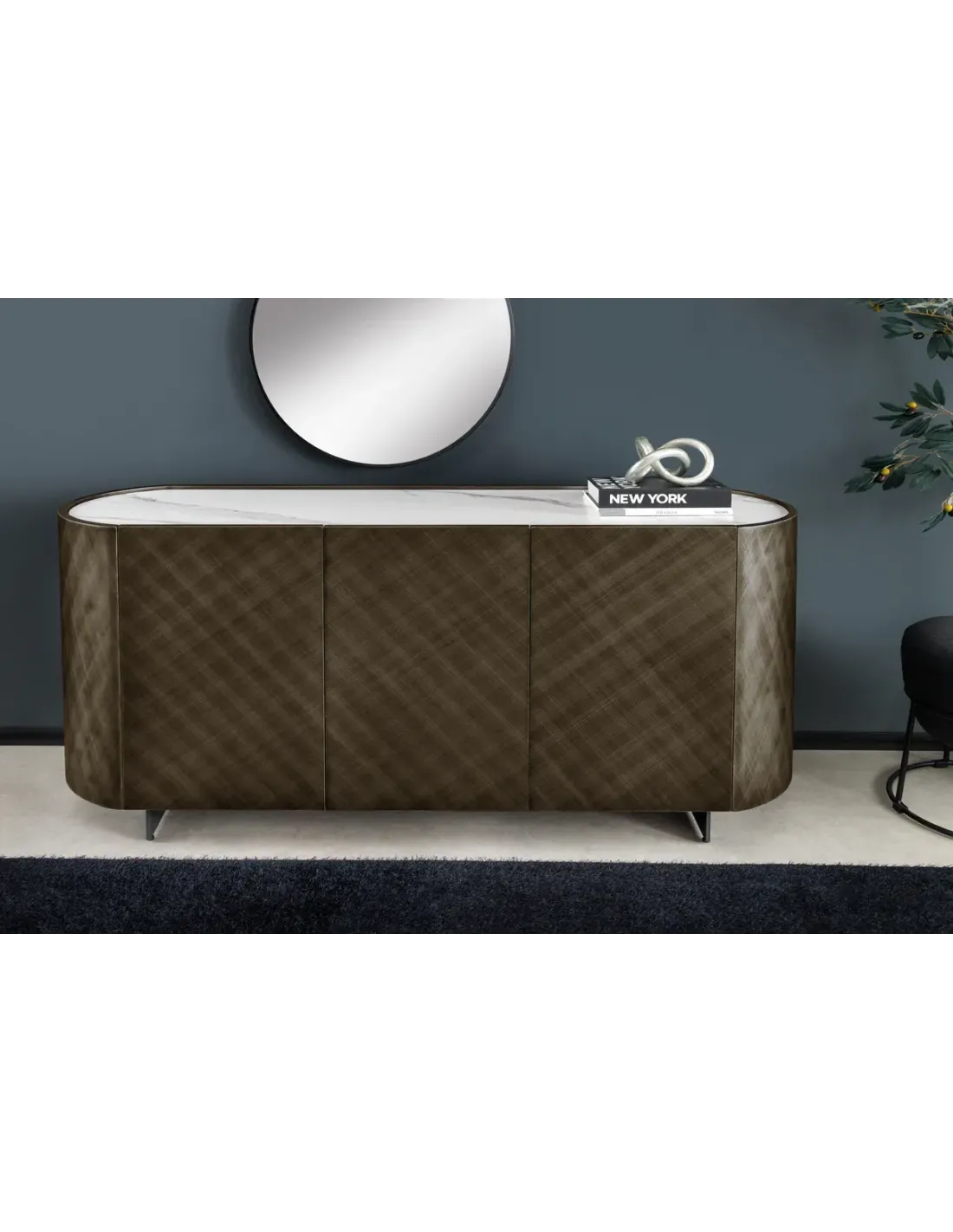 Buffet REFLECTION 150 cm – Élégance 3D avec plateau en marbre céramique
