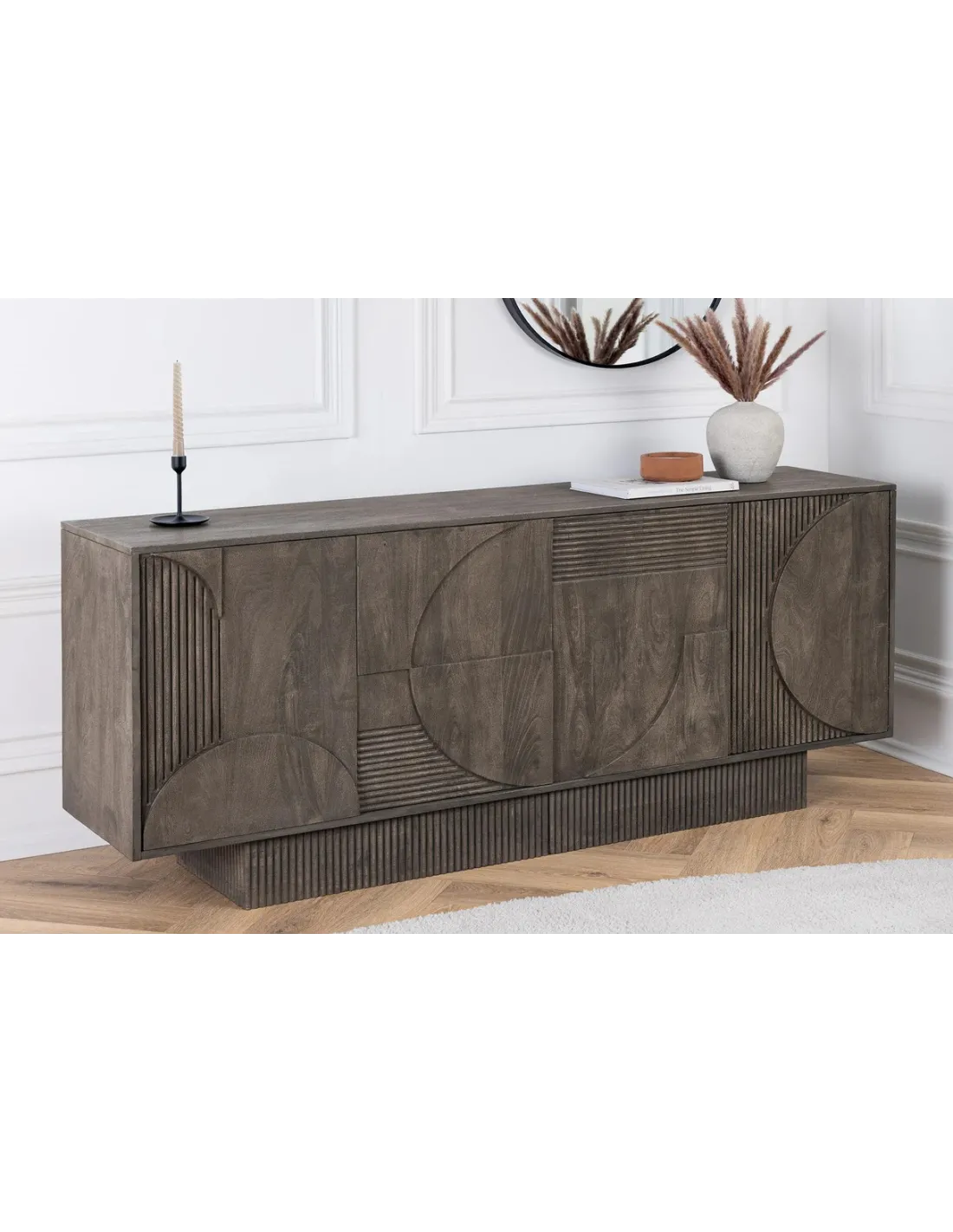 Buffet ART DÉCO 170 cm – Élégance et fonctionnalité en bois de manguier fumé