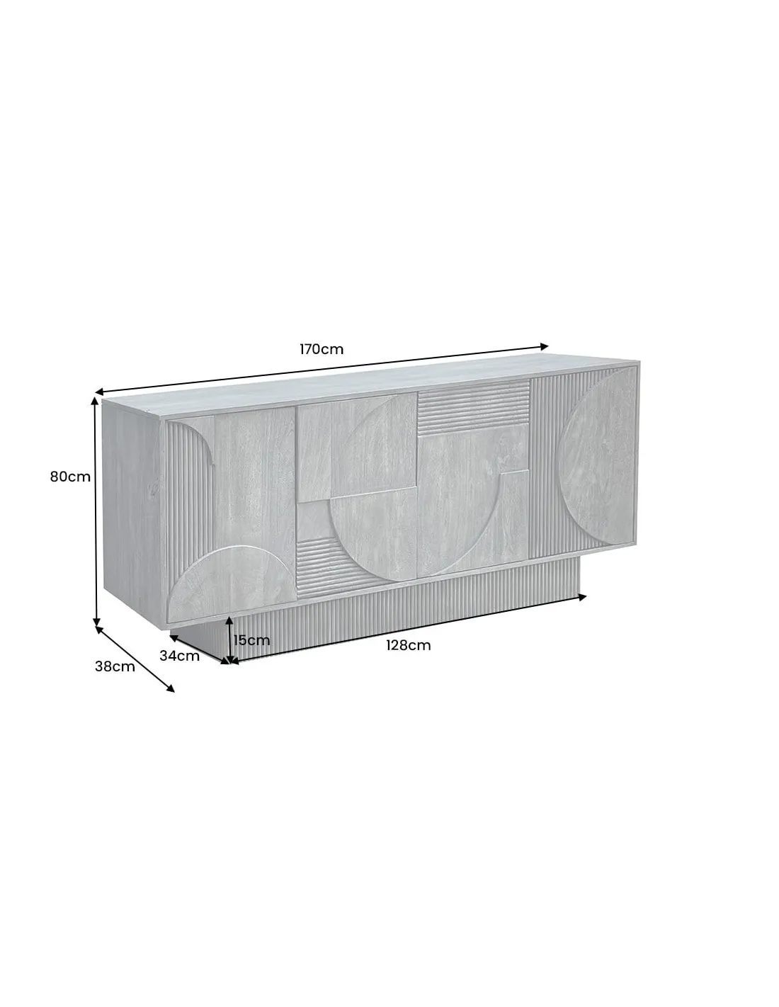 Le buffet ART DÉCO 170 cm incarne l’élégance et le raffinement. Avec ses lignes géométriques inspirées du mouvement Art Déco et sa finition gris verni, il apporte une touche de caractère et de modernité à votre intérieur. Véritable pièce maîtresse, il allie charme vintage et contemporanéité, s’intégrant aussi bien dans une salle à manger chic que dans un salon design.
