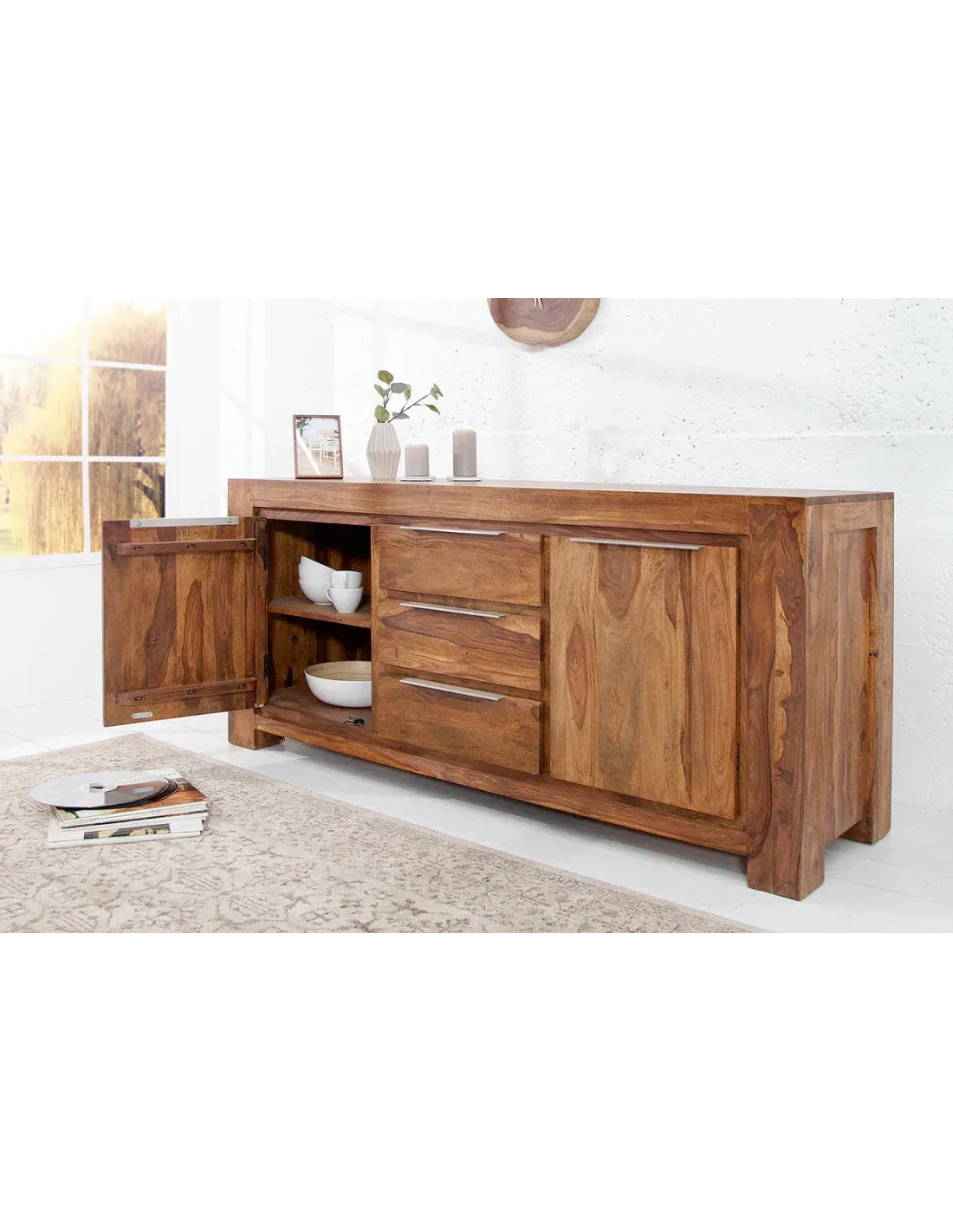 Buffet en bois massif sheesham 175 cm – Style naturel et authentique