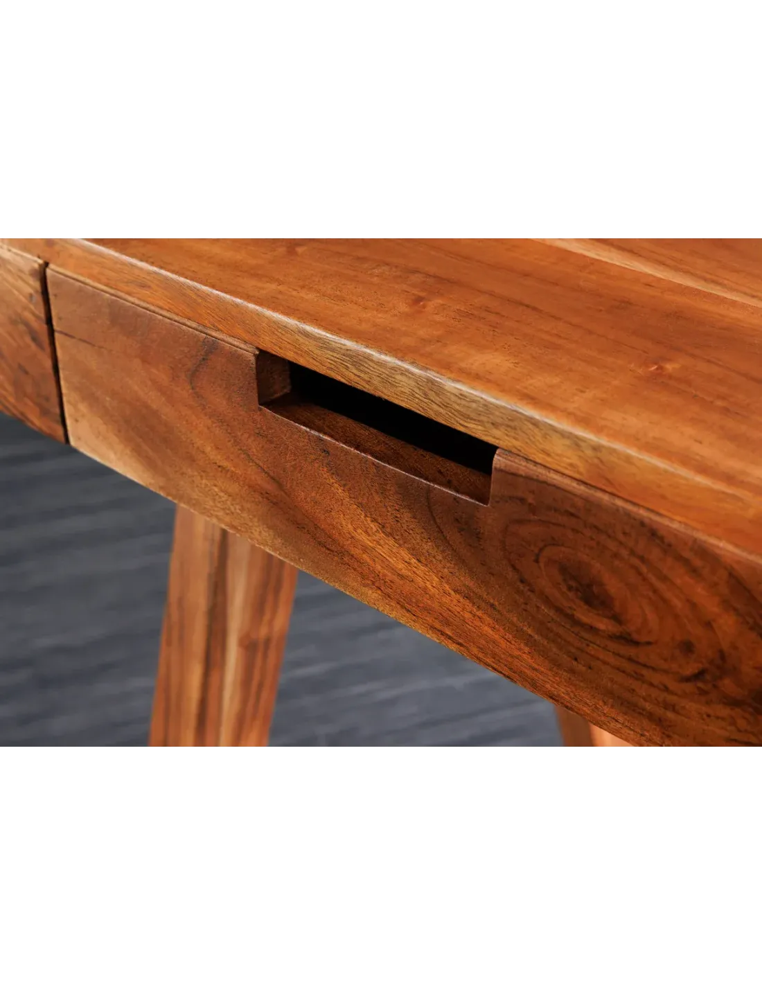 Le bois d’acacia est réputé pour sa solidité et sa résistance, tout en affichant un grain naturel unique. Chaque bureau est une pièce singulière, aux teintes chaleureuses et veinures authentiques. Le vernis protecteur renforce la durabilité et facilite l’entretien au quotidien.