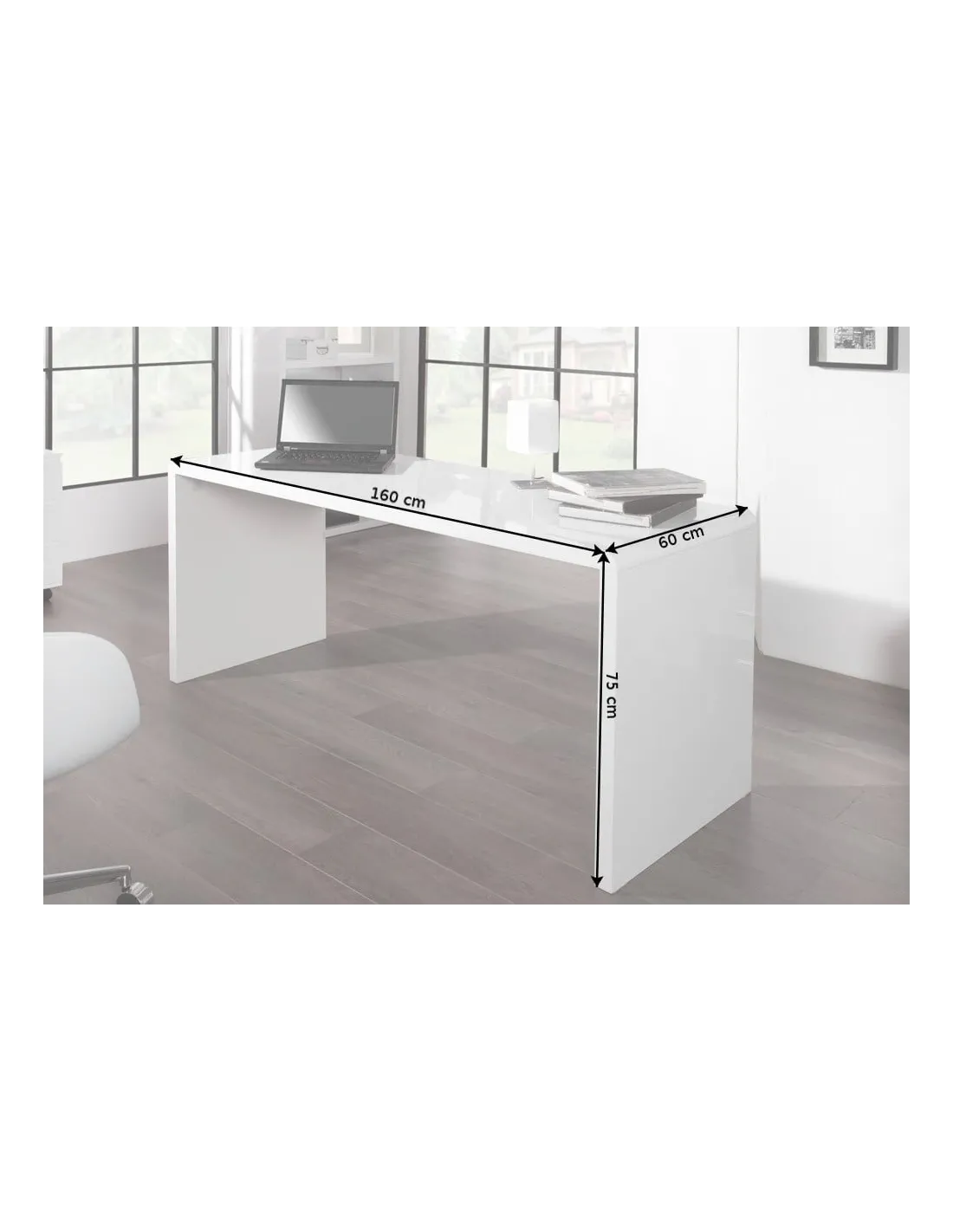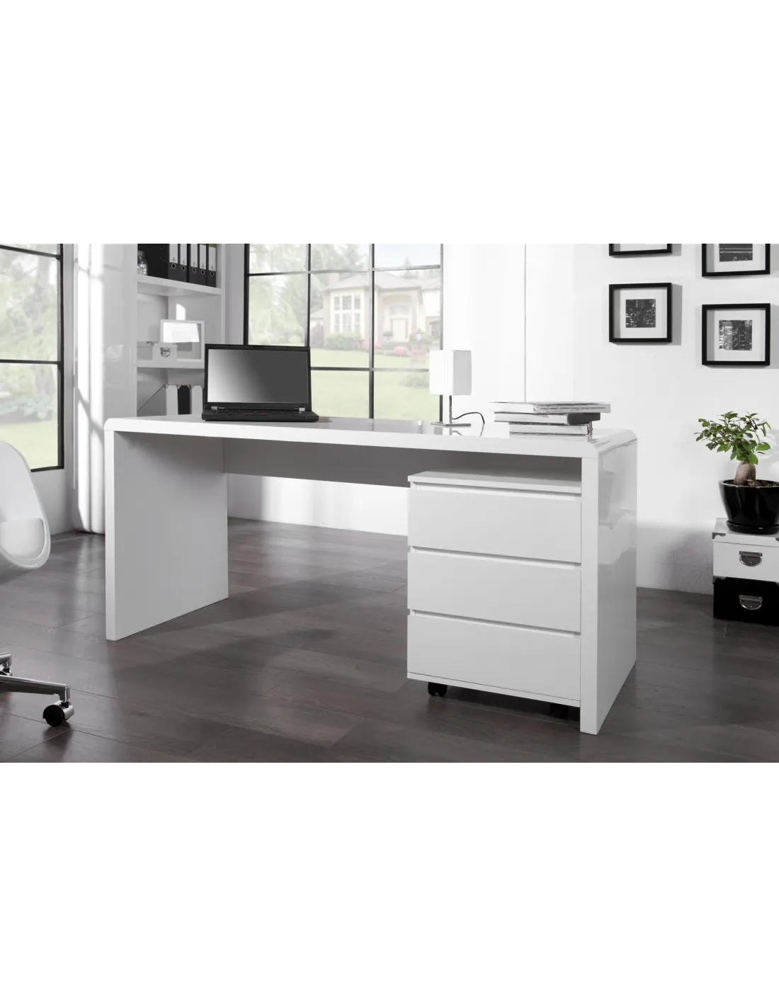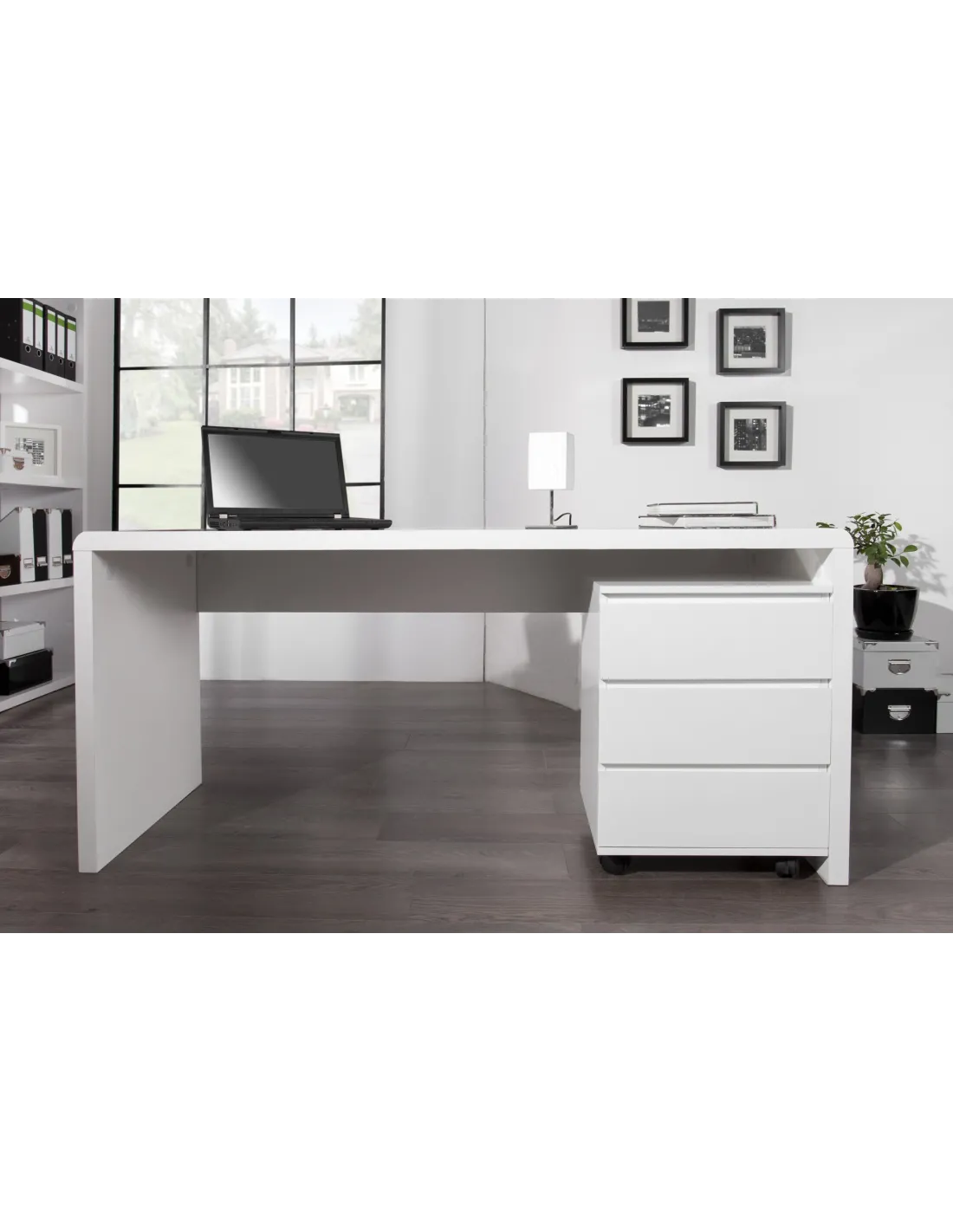 Avec son style minimaliste et sa teinte blanche brillante, ce bureau s’intègre facilement dans tous les décors, qu’ils soient modernes, scandinaves ou professionnels.