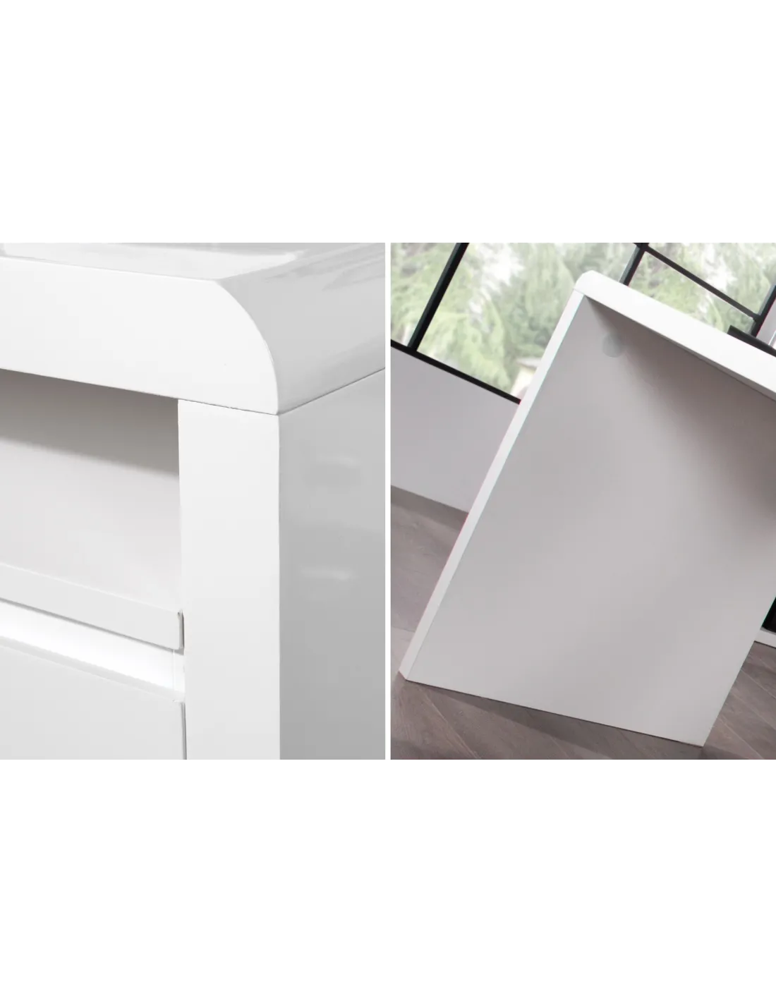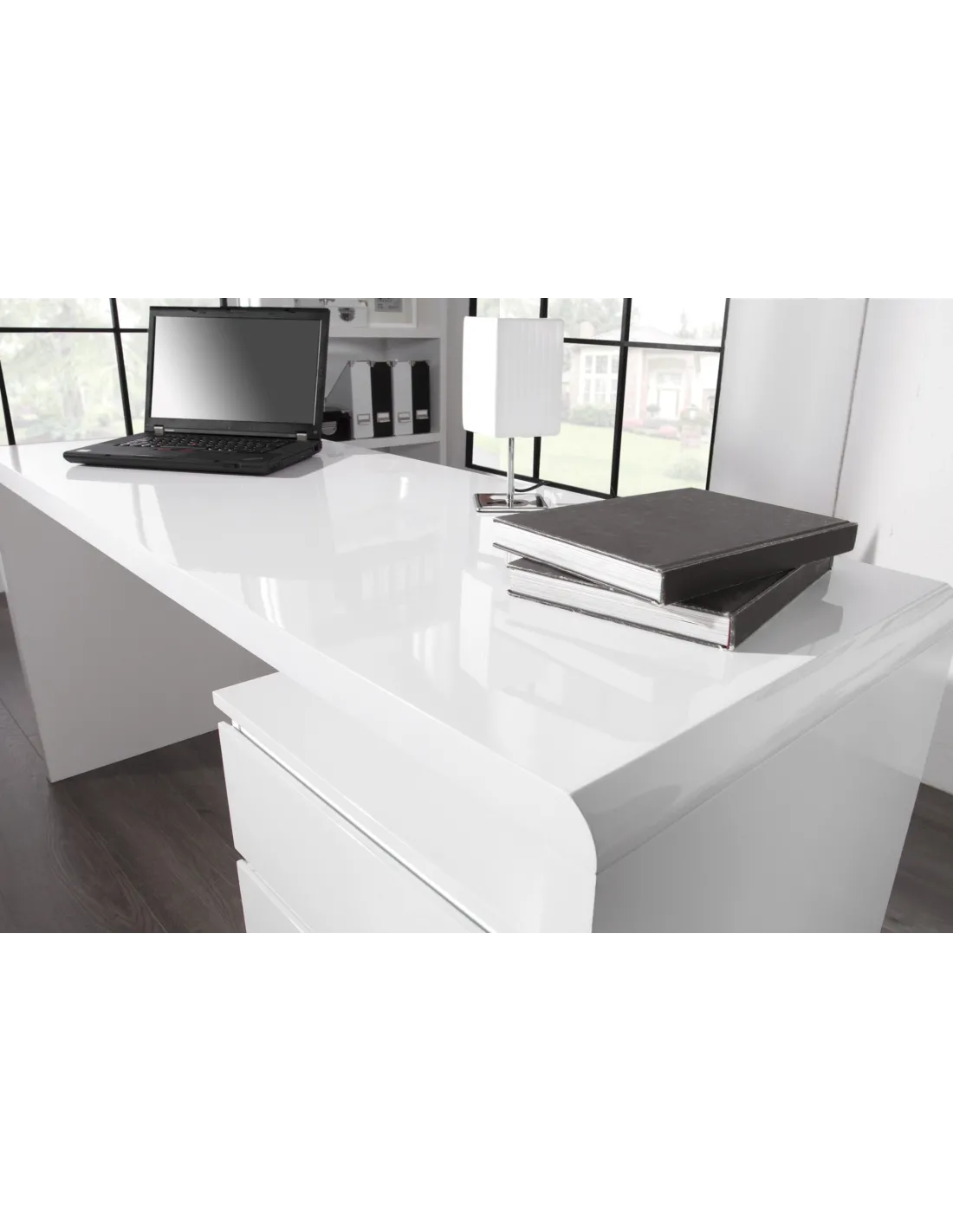 Sa surface laquée reflète la lumière et donne une impression d’espace et de propreté, idéale pour stimuler la concentration et la créativité.