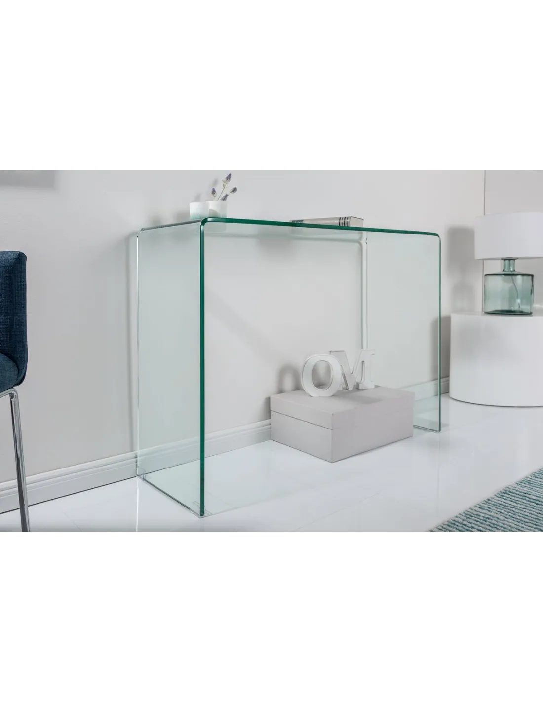 Fabuleux bureau transparent, sa structure est fabriquée en verre trempé de haute qualité, composé d’une plaque de verre courbe haute, des coins arrondis et offre un large plan de travail.