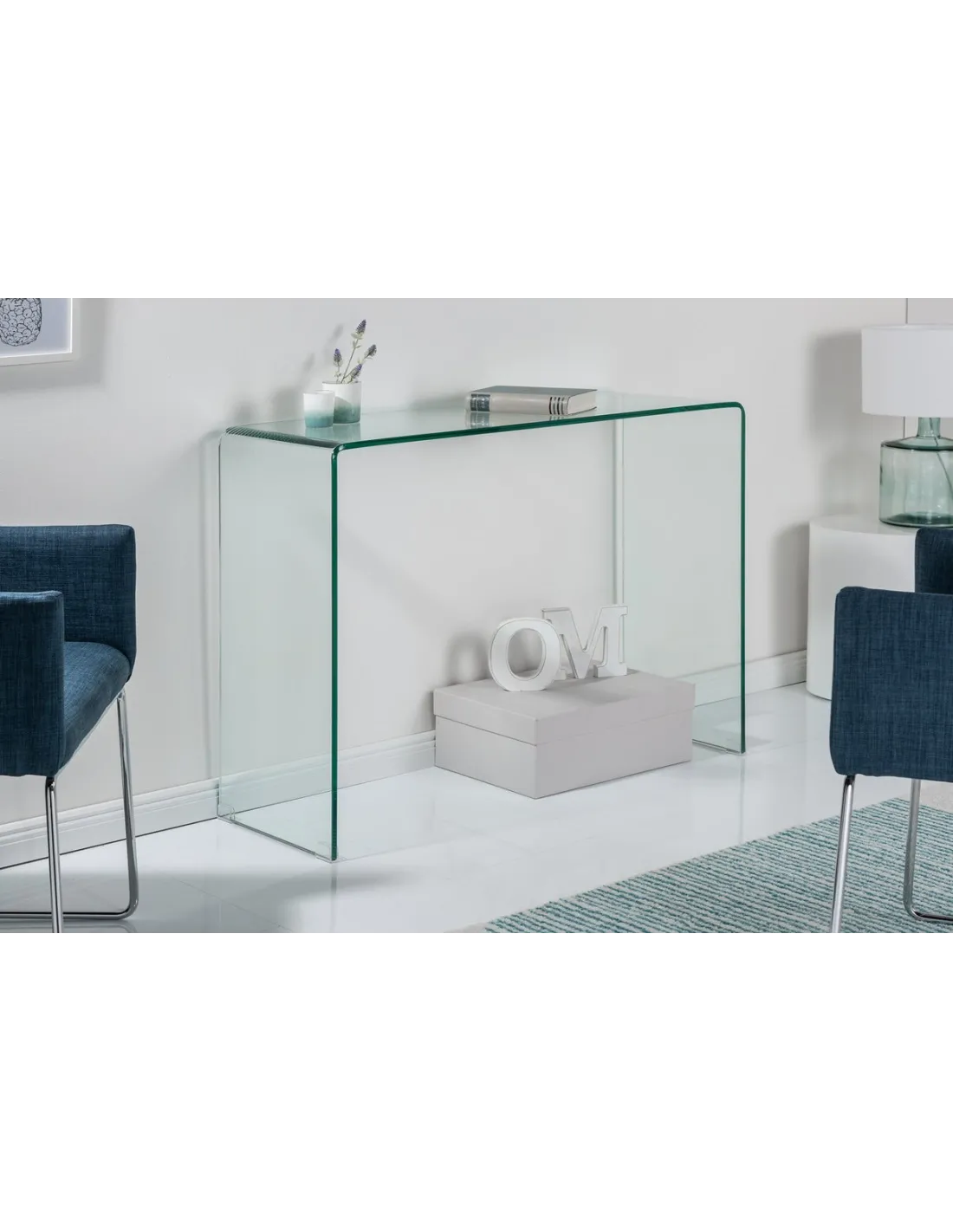 Bureau de 100x35 cm design en verre trempé transparent