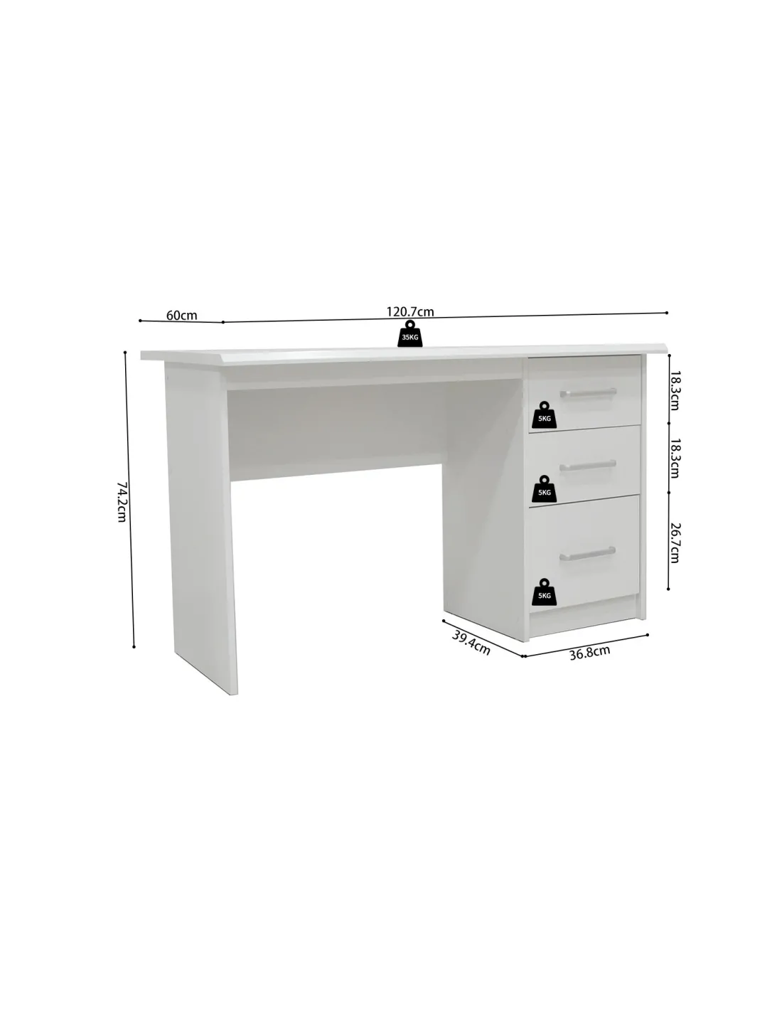 Bureau de Travail Moderne de 120cm avec 3 Tiroirs –Blanc