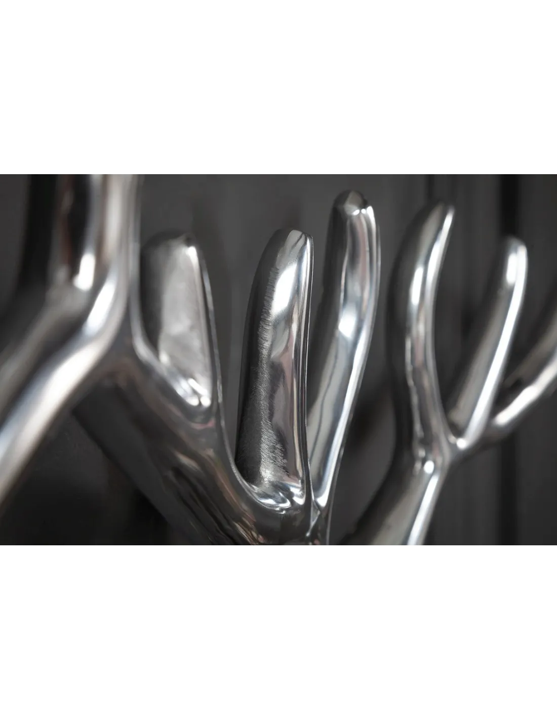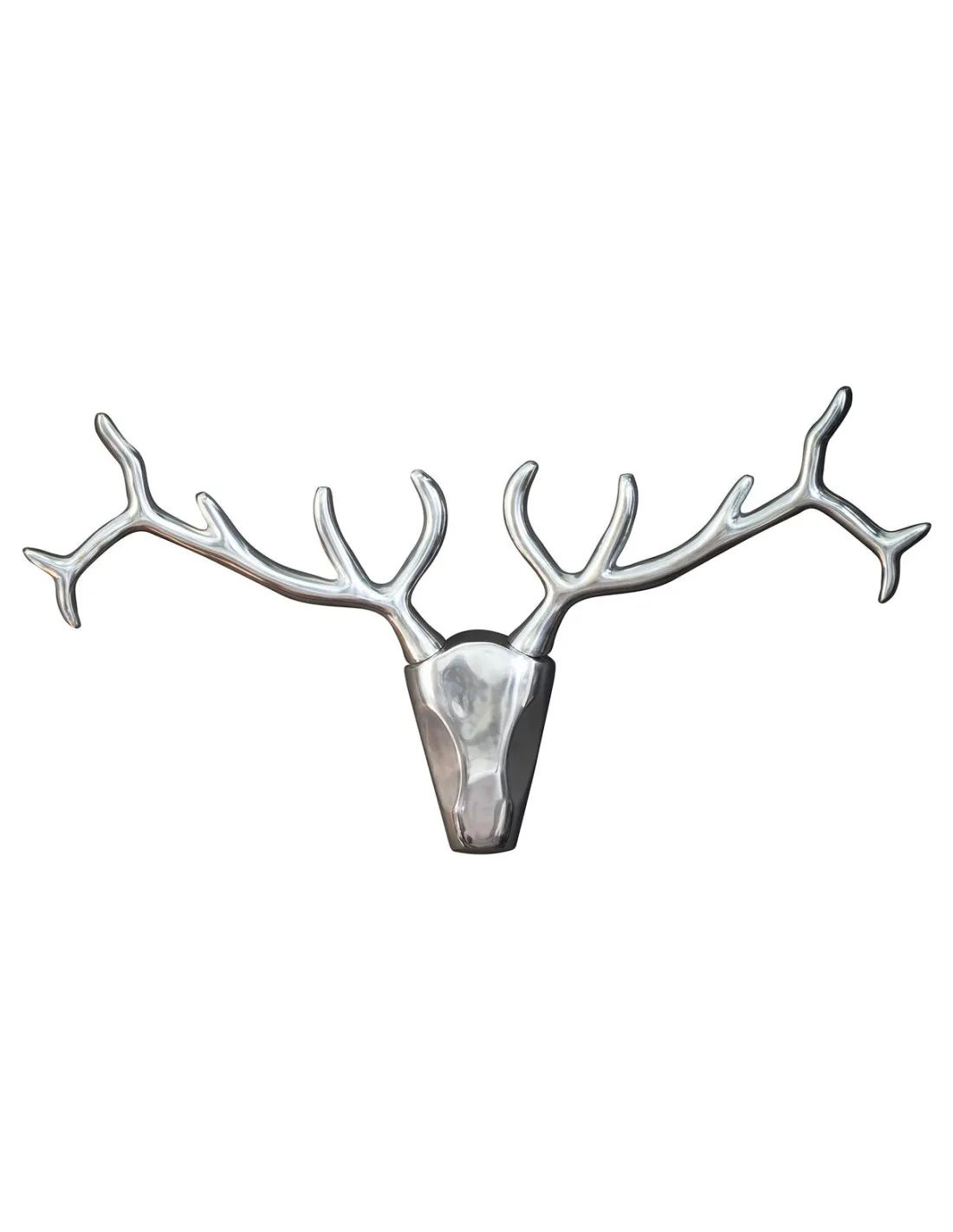 Vous aimez les accessoires qui ajoutent un décor poétique et harmonieux, voilà un trophée fabriqué en aluminium, coloris argent, il créera un aspect fascinant par sa finition qui reflète la brillance, vous le fixerez au mur de votre chambre, à l'entrée ou votre salon, il sera un symbole de noblesse surtout par ses cornes design .