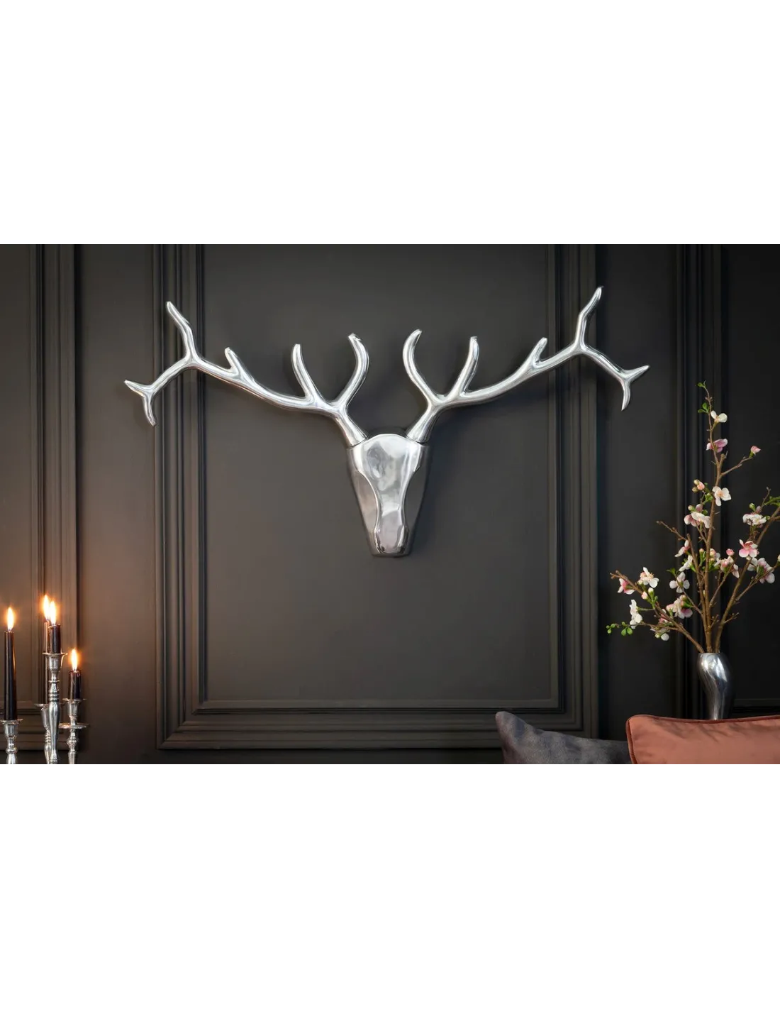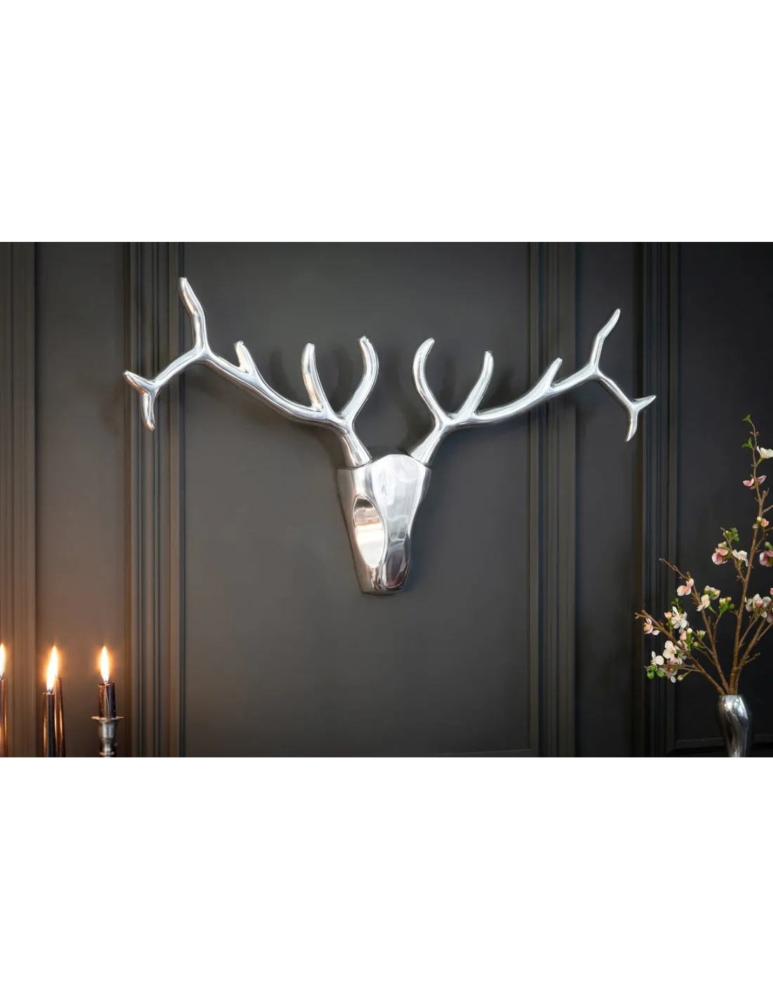 Trophée mural design Tête de Cerf 90 cm en aluminium argenté