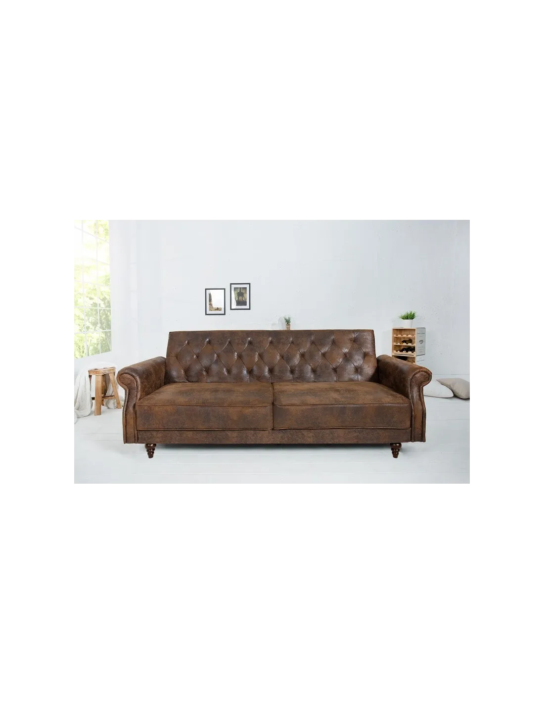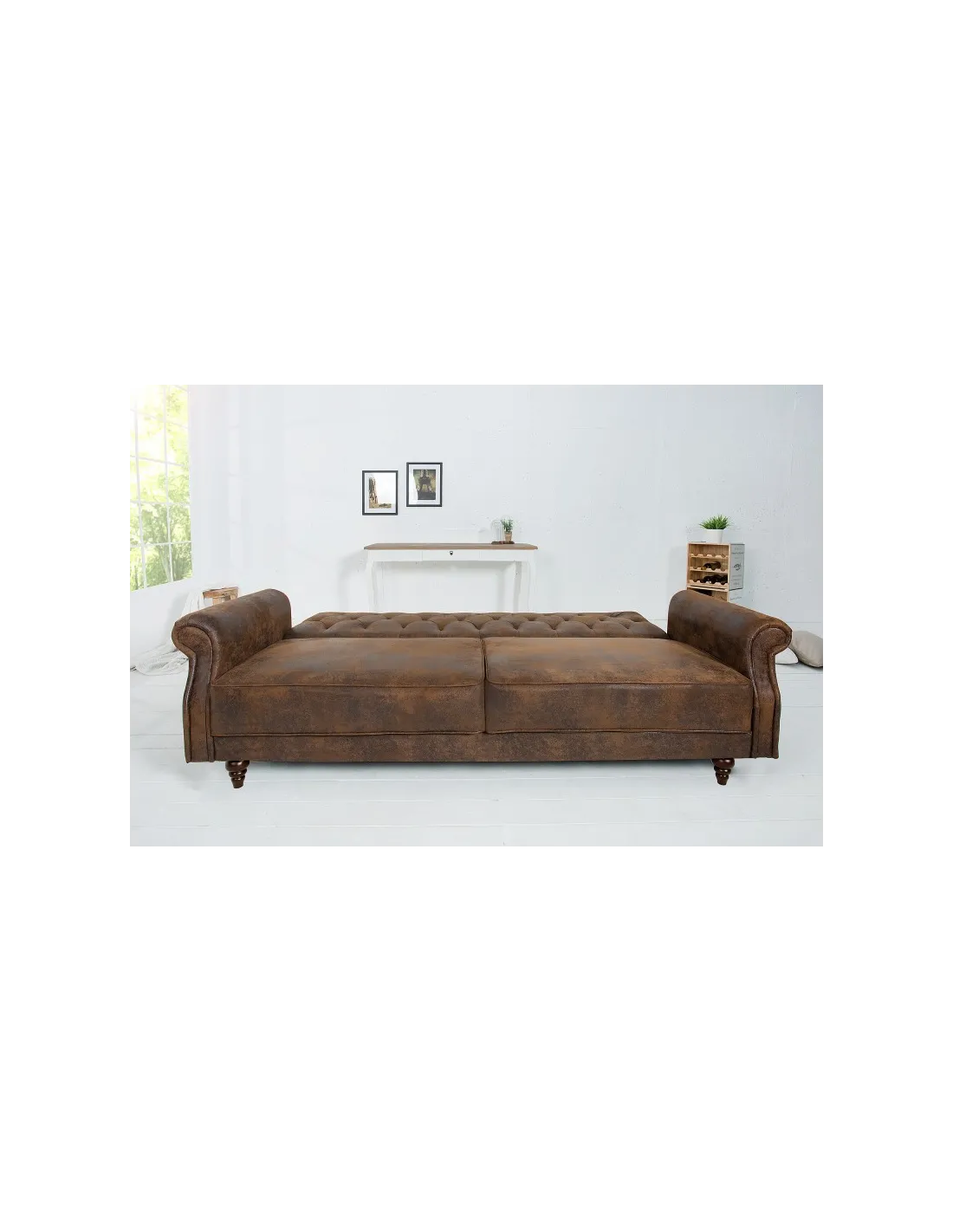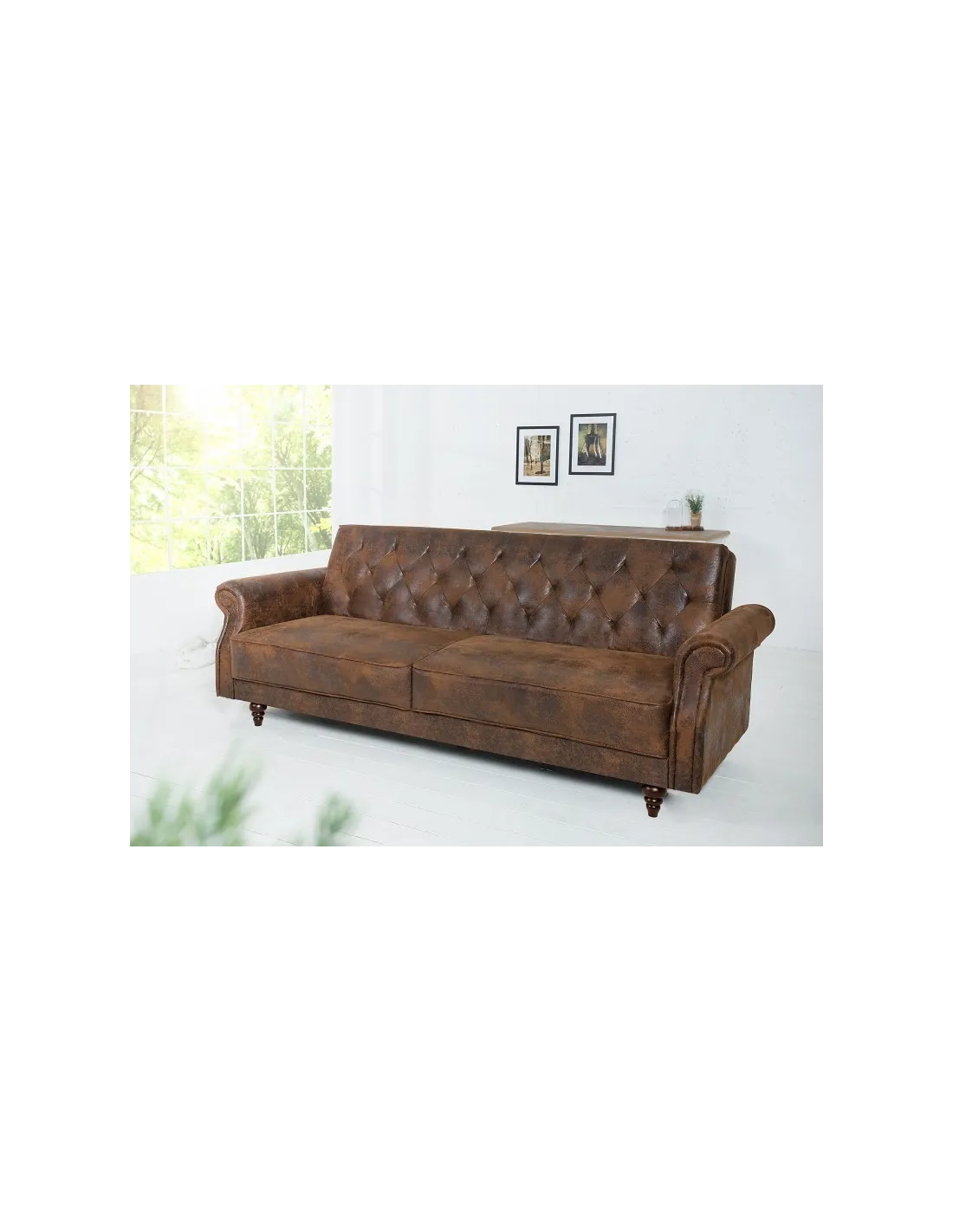 Canapé de style baroque très pratique, les coussins de siège sont rembourrés pour garantir un confort supplémentaire de plus le revêtement synthétique est faite en microfibre (100% polyester) dont la couleur marron antique vous ramène au période de chesterfield. Pour gagner plus d'espace et avoir moins encombrement des meubles dans votre pièce ce mobilier convertible peut servir comme un lit de deux places !