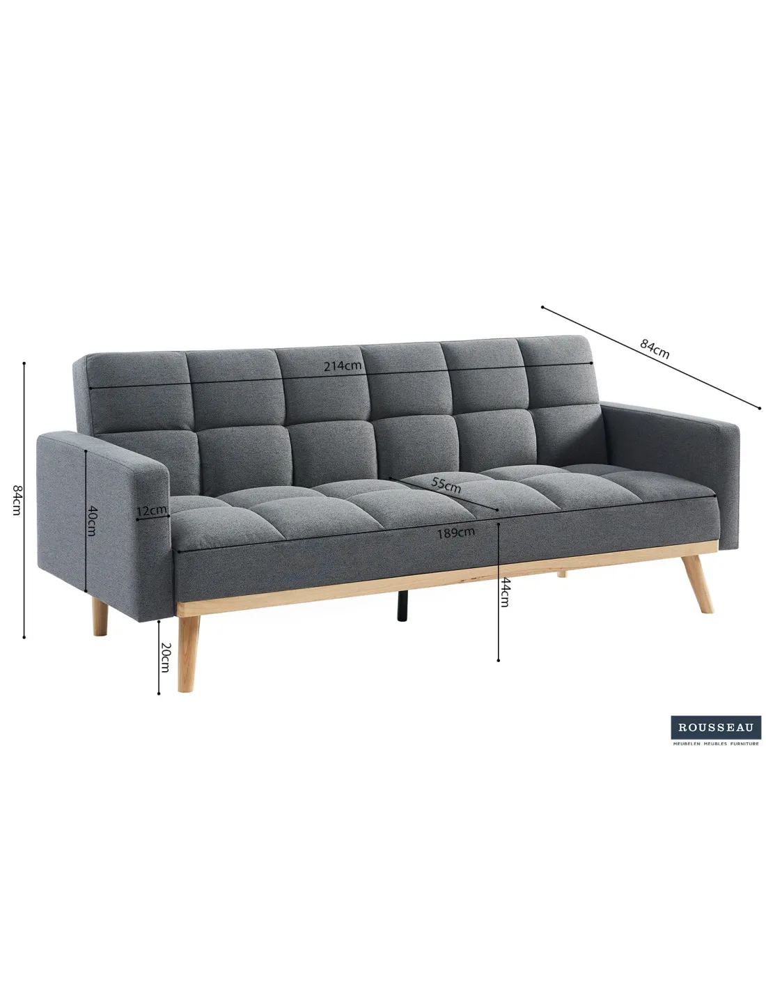 Dimensions canapé : H 84 x L 214 x P 84 cm