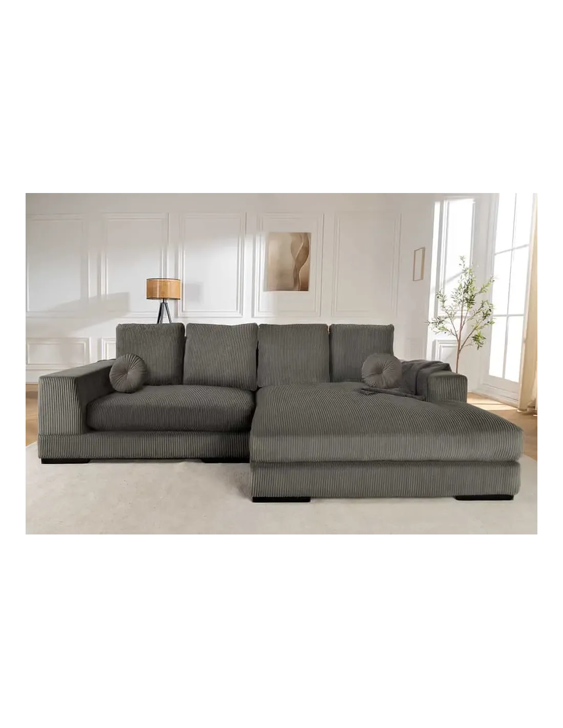 Canapé d’angle BABYLON 270 cm XXL – Cordon Gris avec Pouf