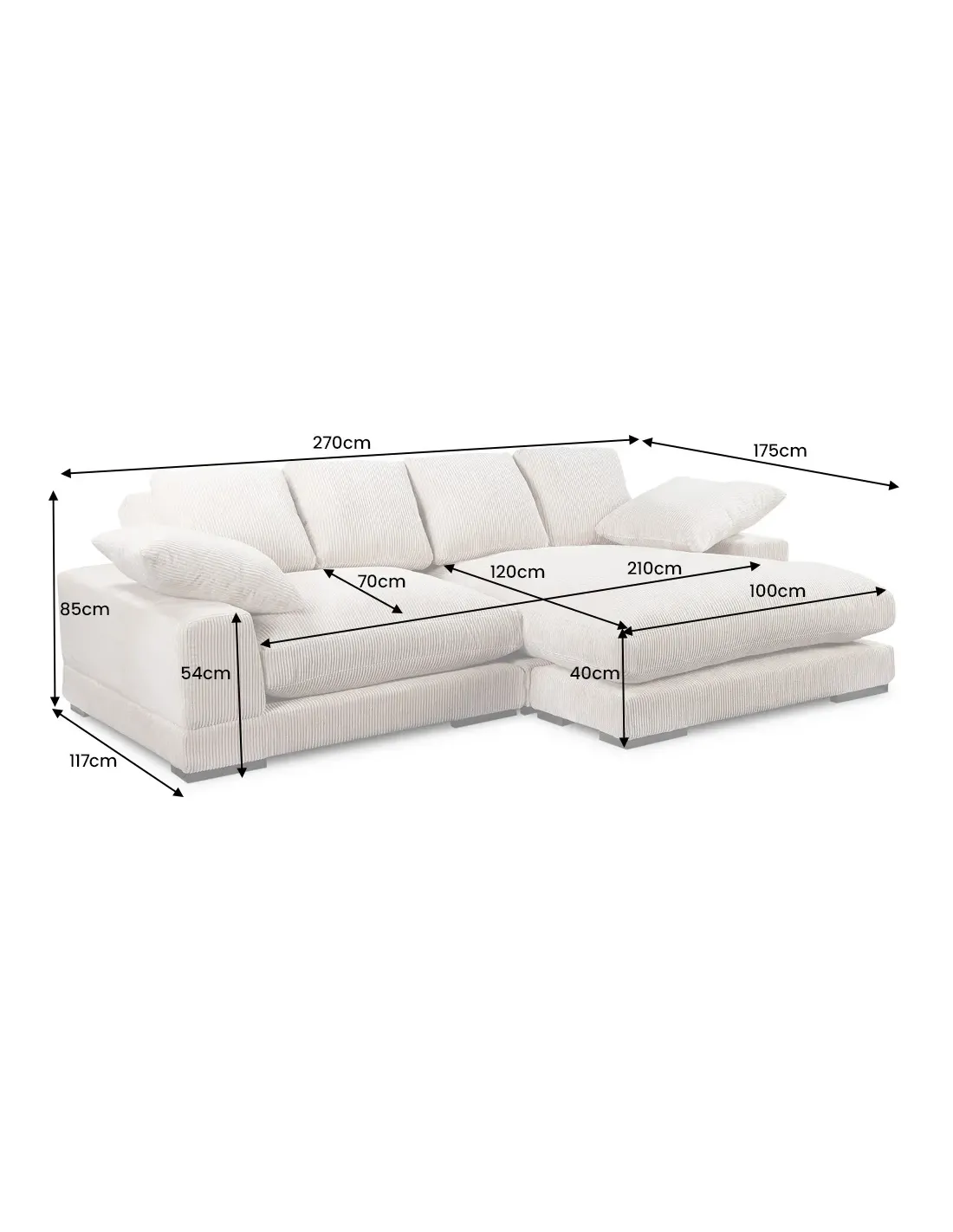 Dimensions : L. 270 x P. 175 x H. 85 cm