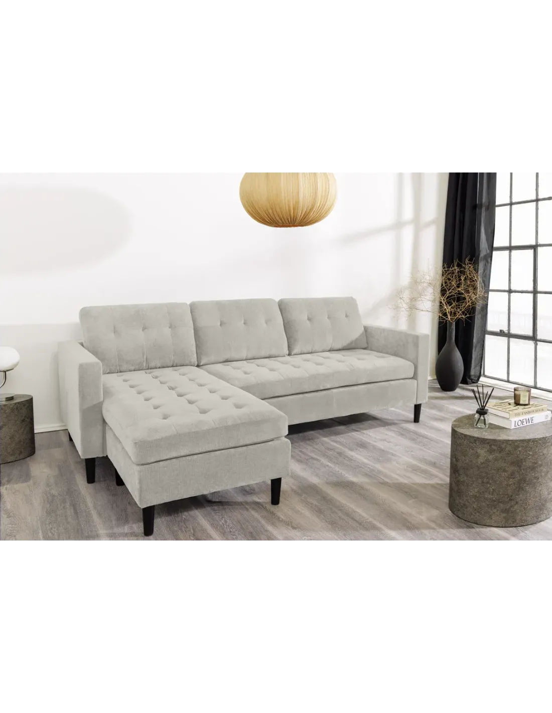 Apportez élégance décontractée et confort optimal à votre salon avec le canapé d’angle STOCKHOLM 220 cm. Son revêtement en velours côtelé grège doux et son design chaleureux en font un espace idéal pour se détendre, recevoir ou passer du temps en famille. Le pouf assorti offre une modularité pratique et peut être placé à droite ou à gauche selon vos besoins.
