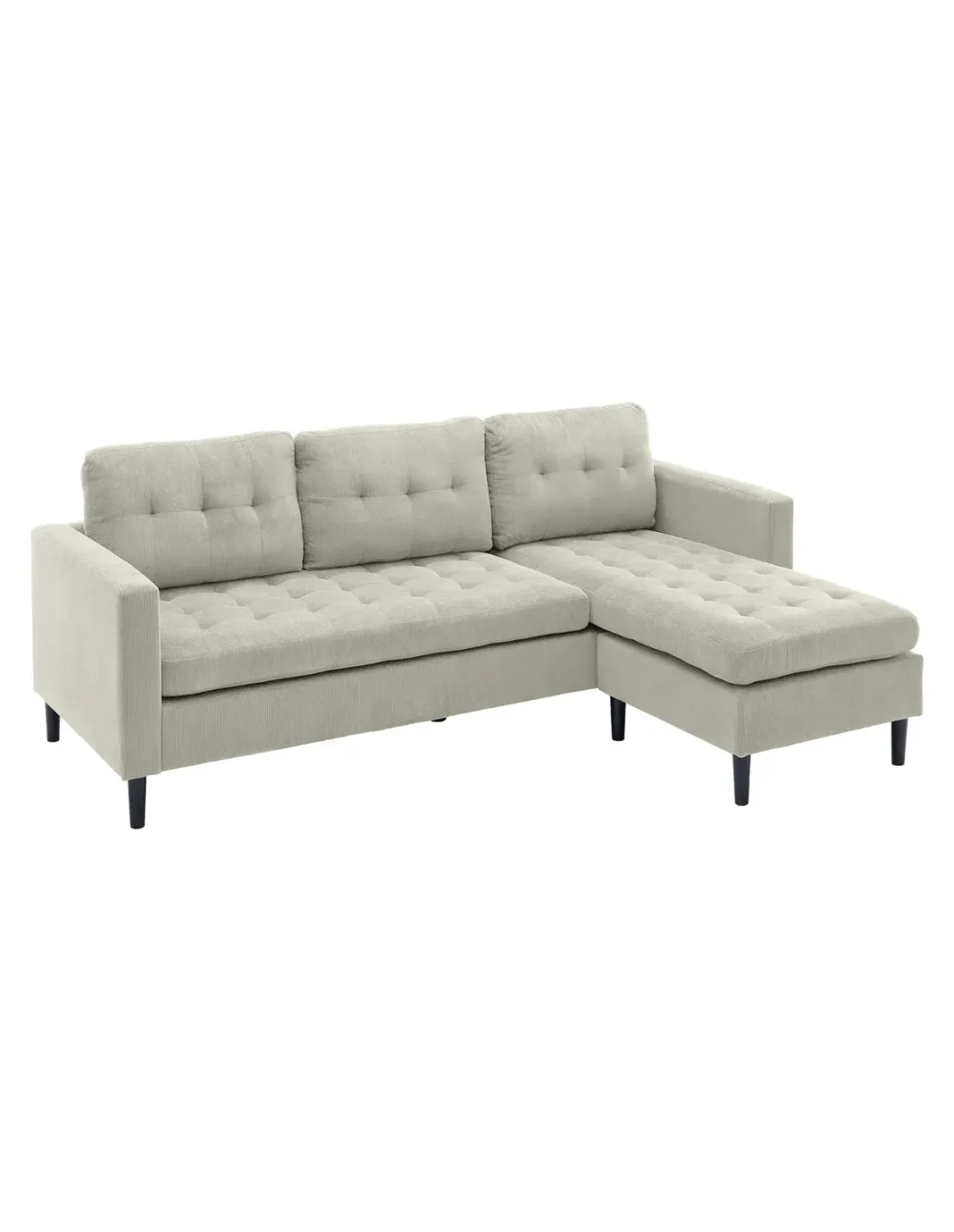 Canapé d’angle STOCKHOLM 220 cm – 3 places à ressorts ensachés – Velours côtelé Grège