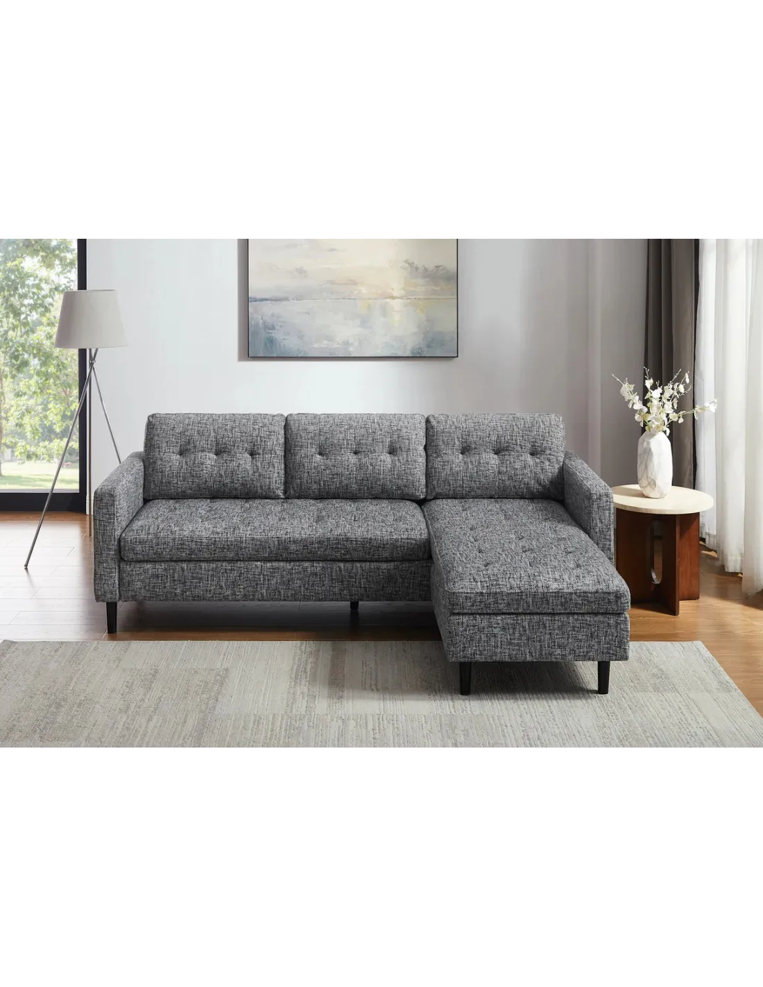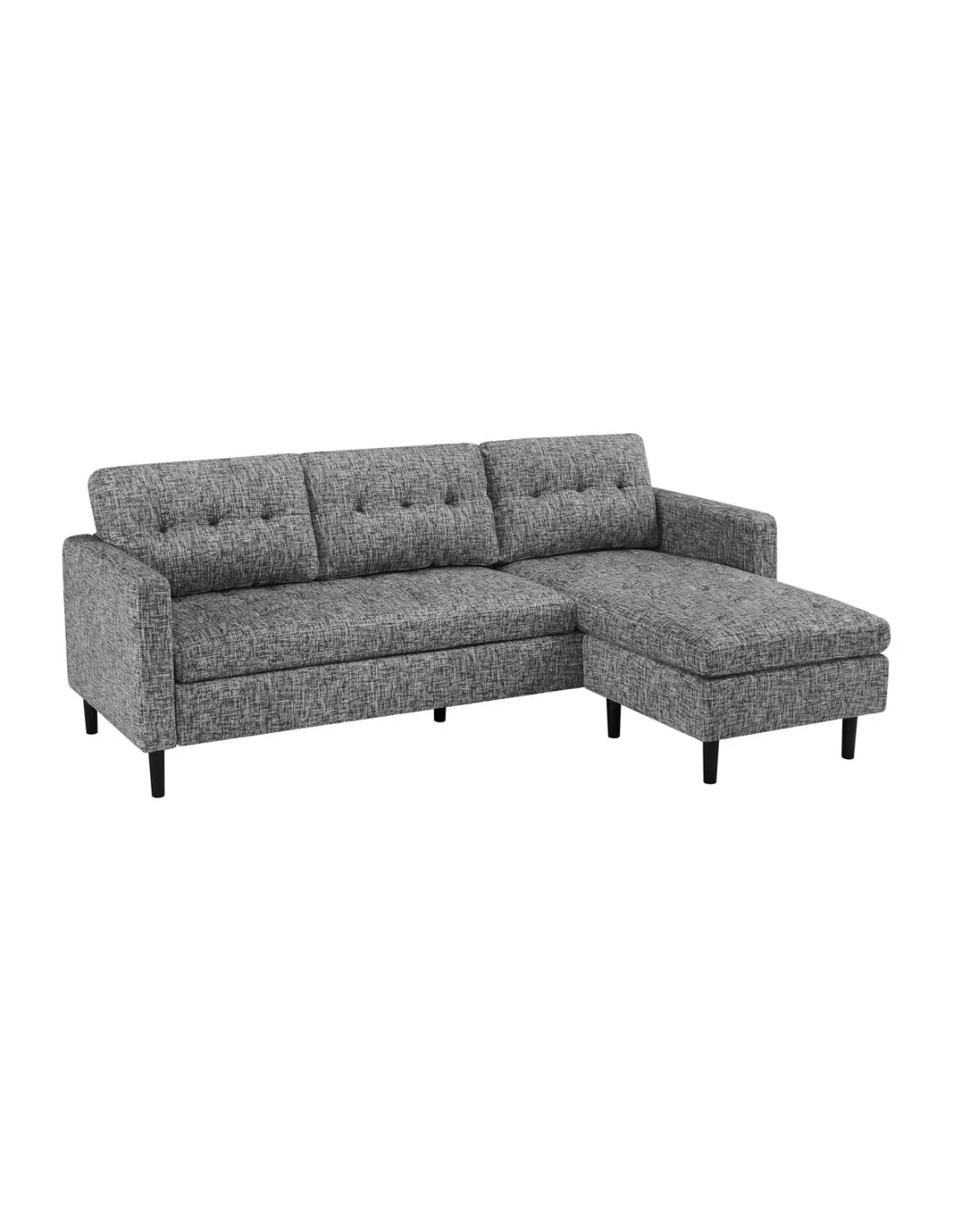 Alliez confort et design scandinave avec le canapé d’angle STOCKHOLM en tissu texturé gris. Ses lignes épurées, son assise moelleuse à ressorts et son pouf modulable en font le compagnon idéal pour vos moments de détente.