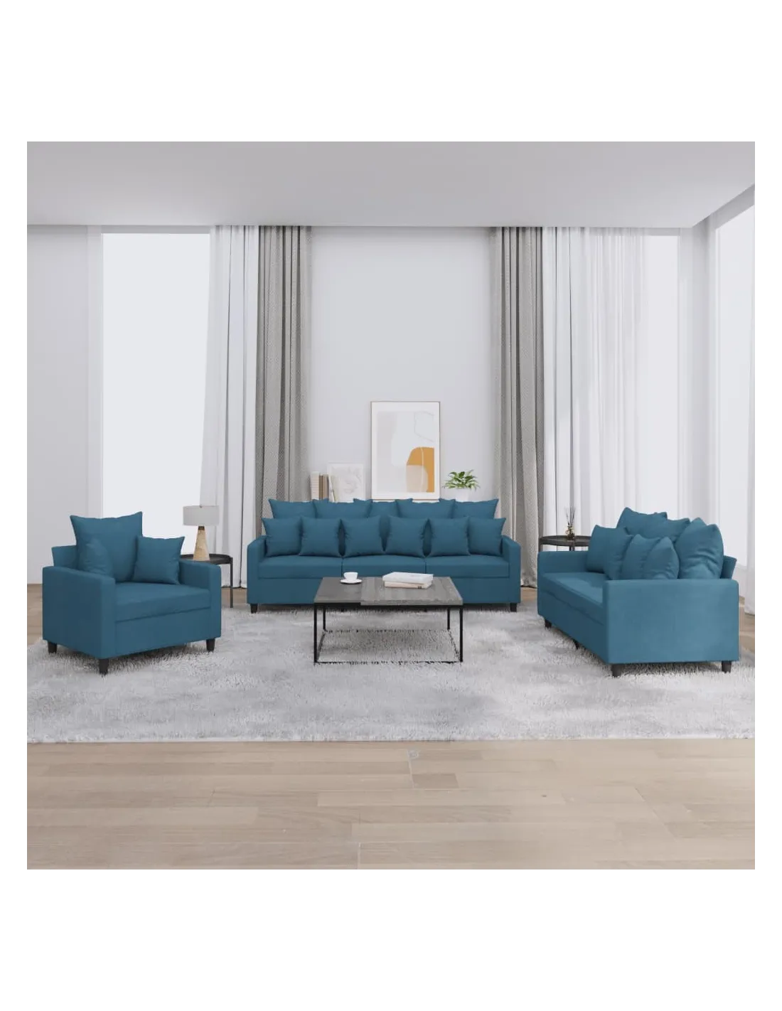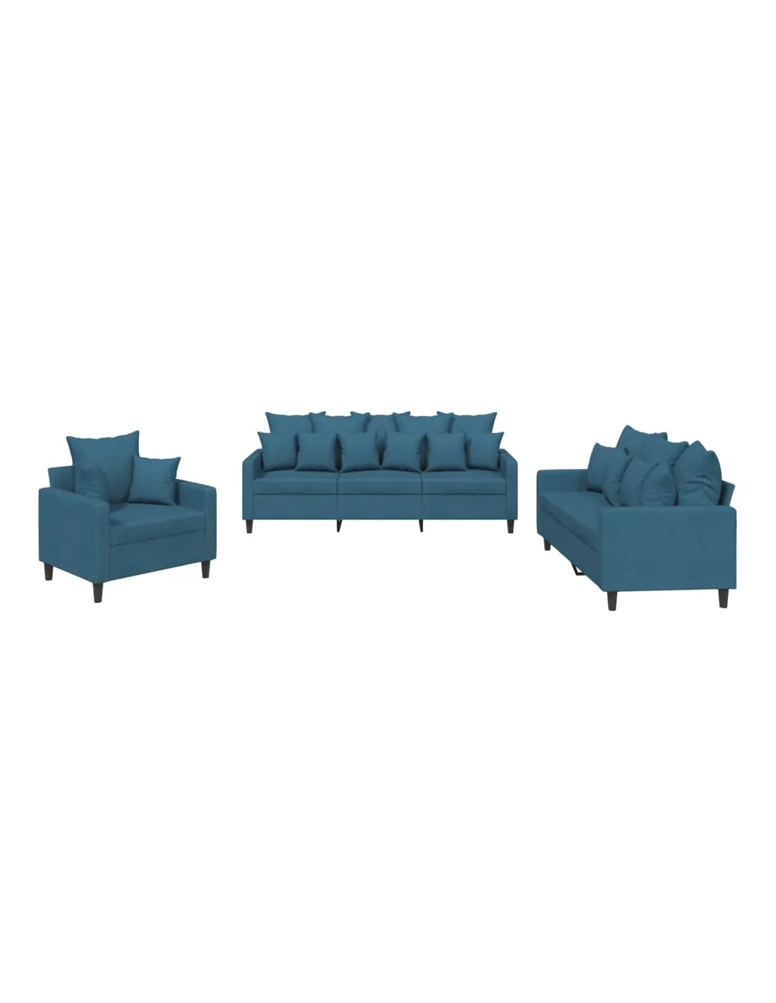 Ensemble de canapés 3 pcs avec coussins Bleu Velours