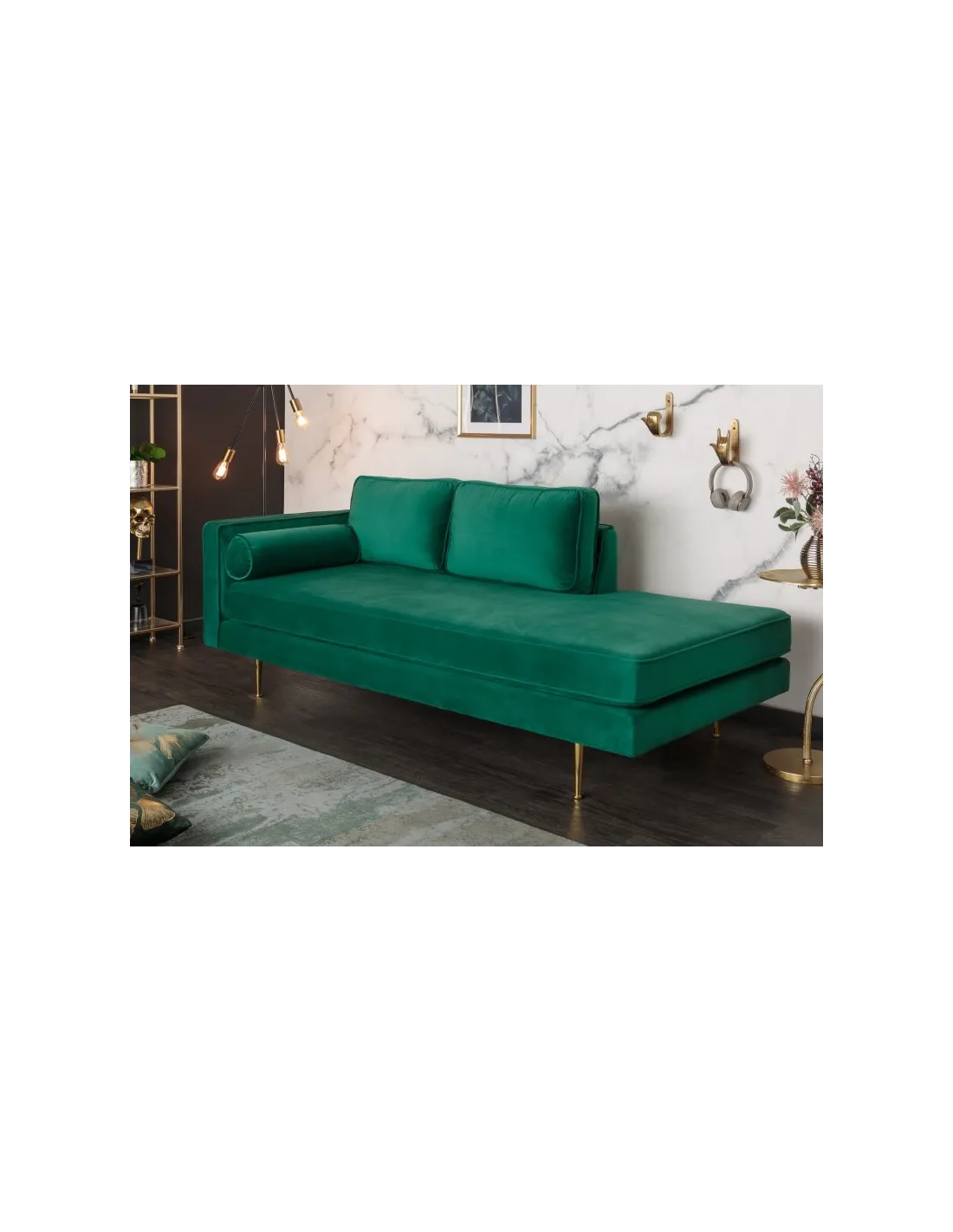 Méridienne Rembourré ultra-Tendance en Velours Vert Emeraude 196cm